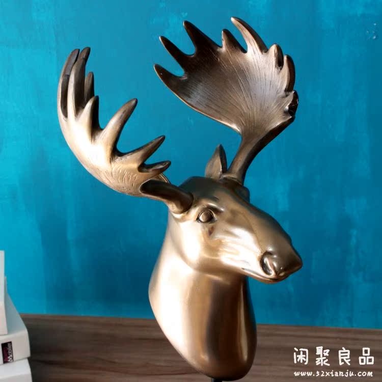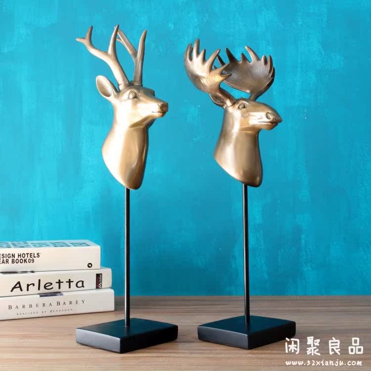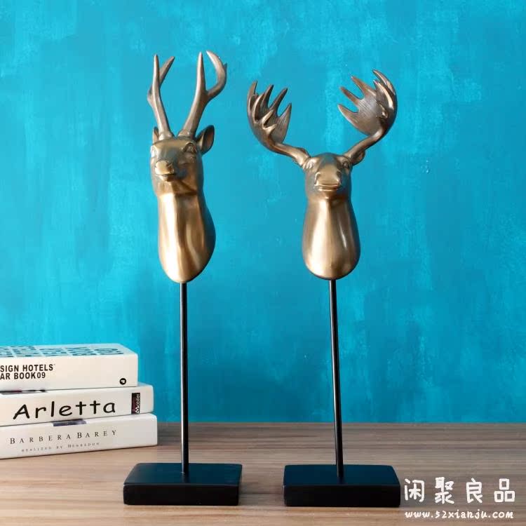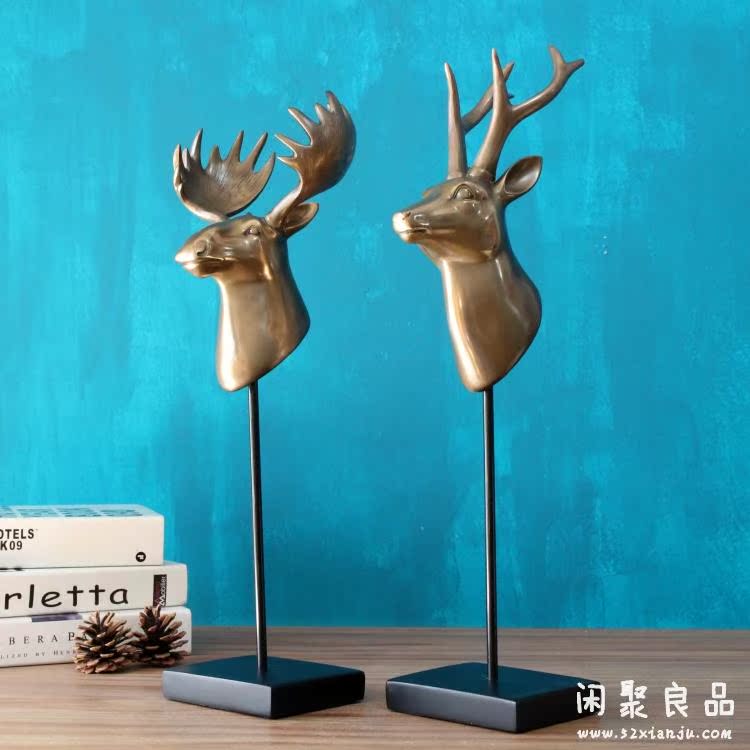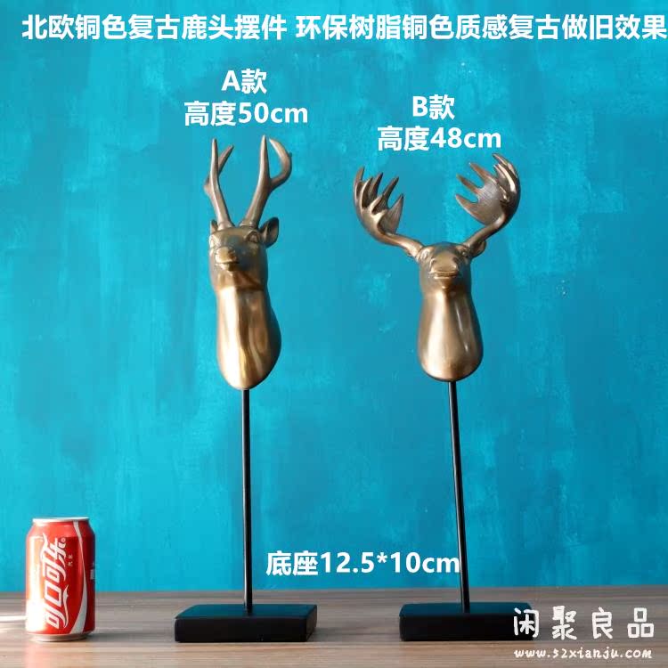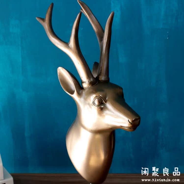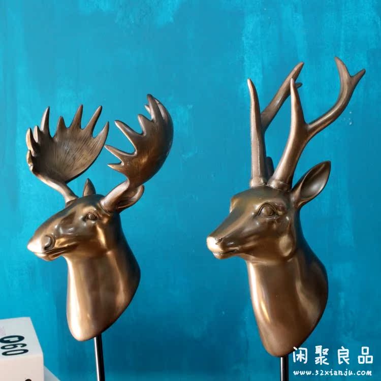 A款北歐現代輕奢復古銅色麋鹿頭鹿角裝飾擺件 家居玄關飾品商鋪陳列