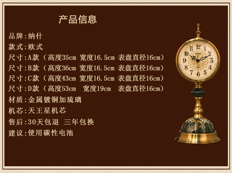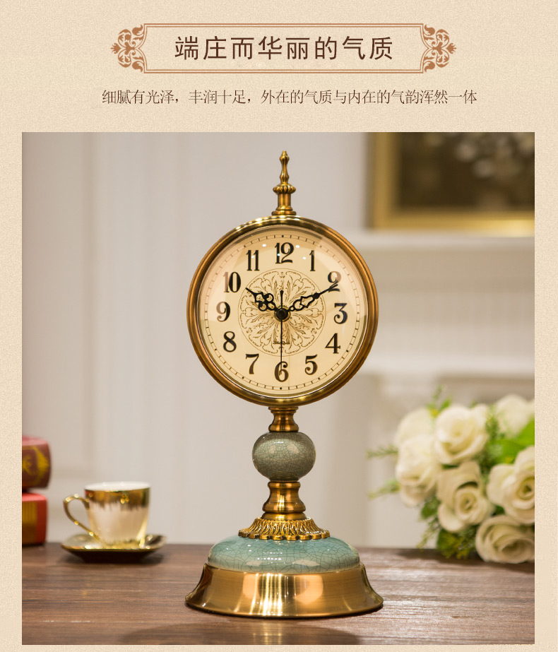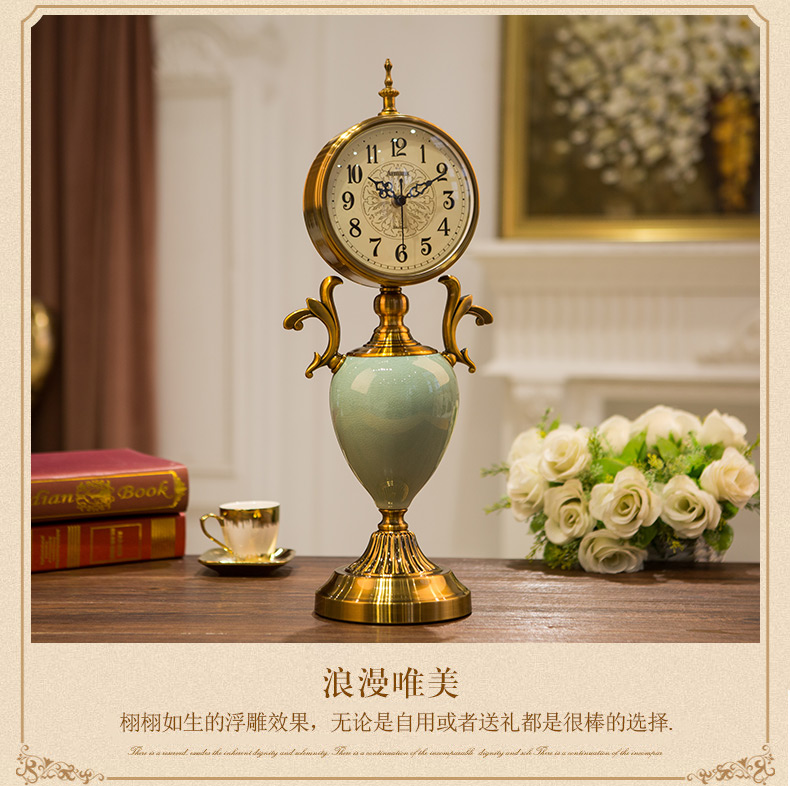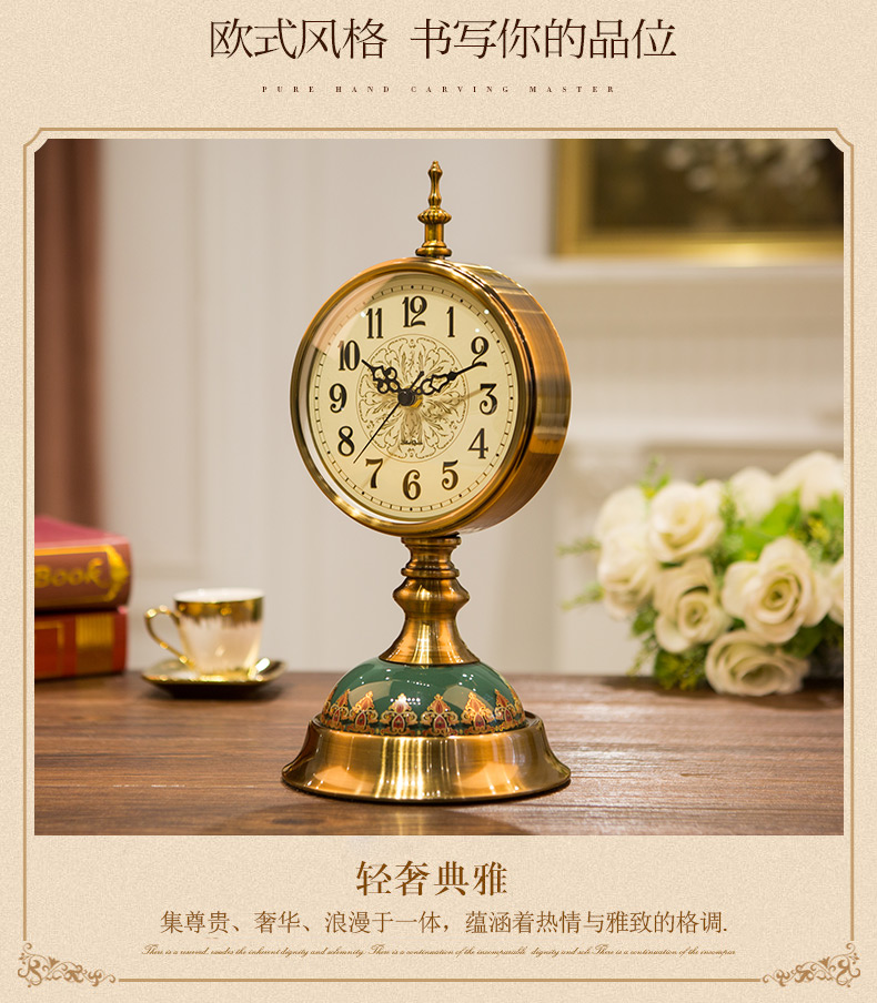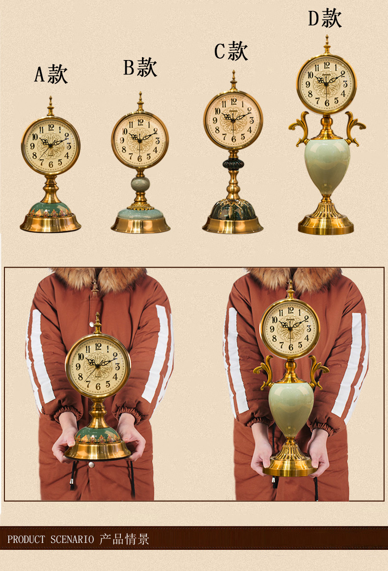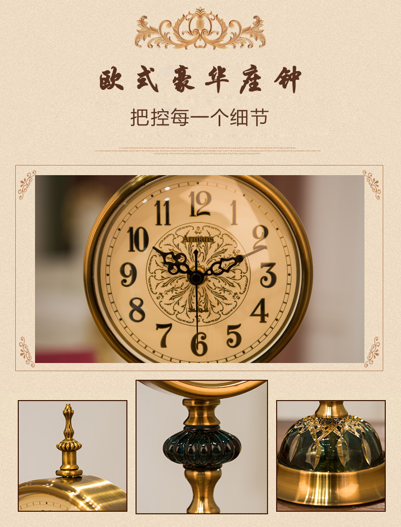 A款12英寸歐式鐘表座鐘擺件客廳擺鐘桌面大號靜音時鐘創意臺鐘金屬臺式坐鐘