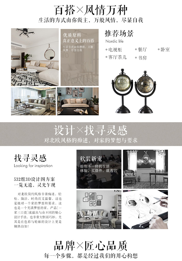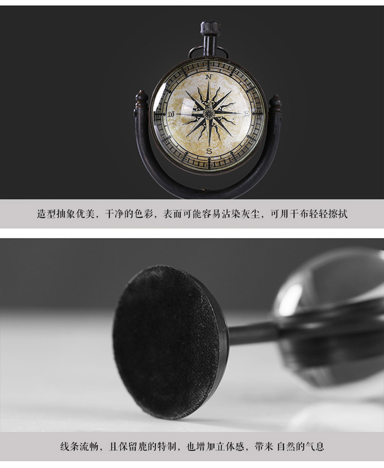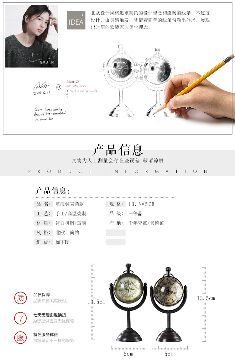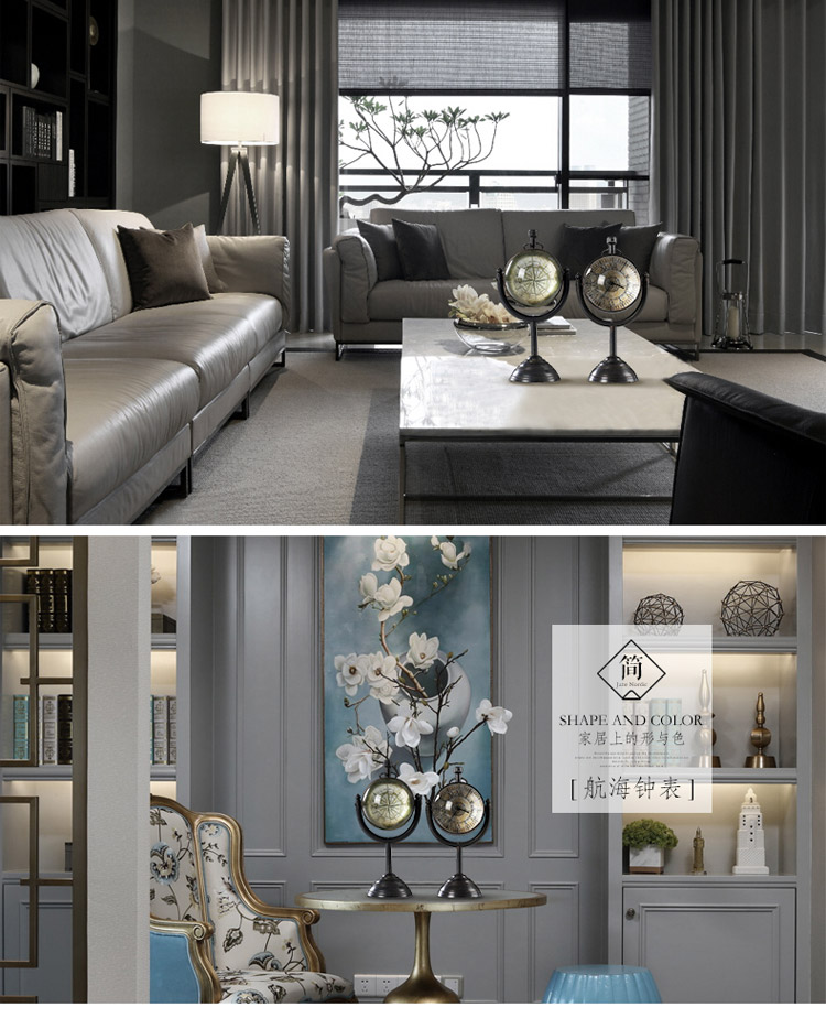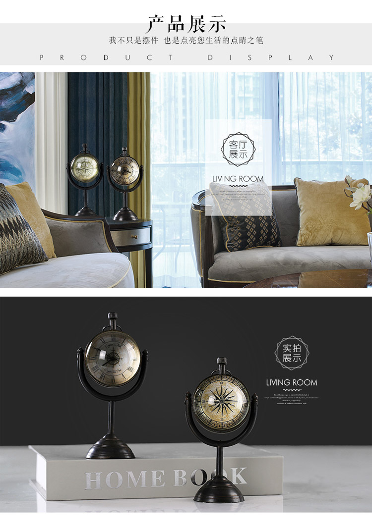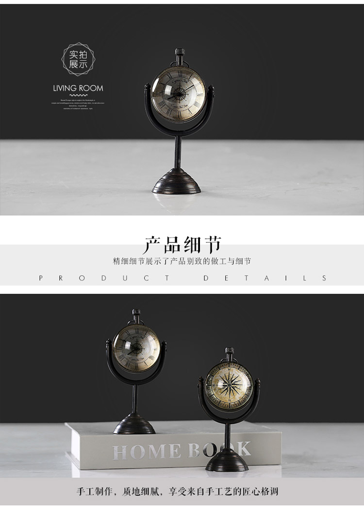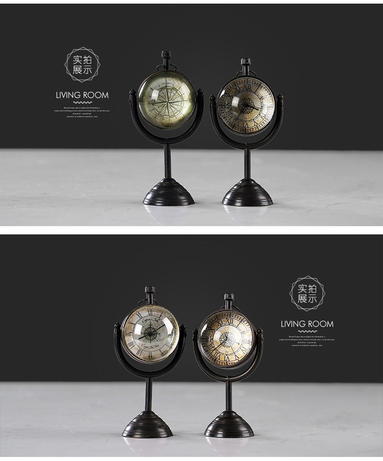 A款 旋轉水晶球體航海時鐘美式復古創意旋轉水晶球體雙面時鐘擺件書房客廳辦公室裝飾品擺設