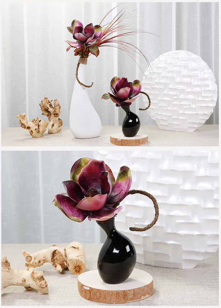 4頭蝴蝶蘭玫紅仿真蝴蝶蘭盆栽家居客廳餐桌辦公室擺設絹布婚慶裝飾假花綠植花卉