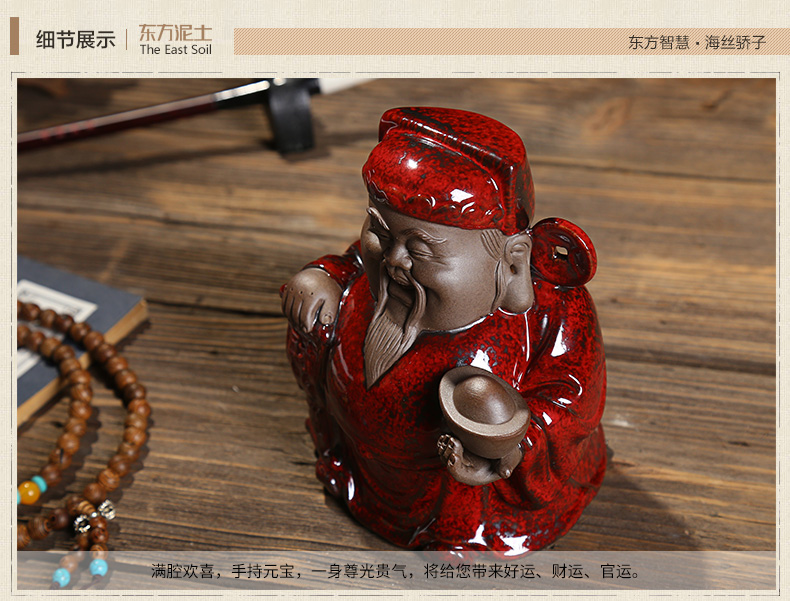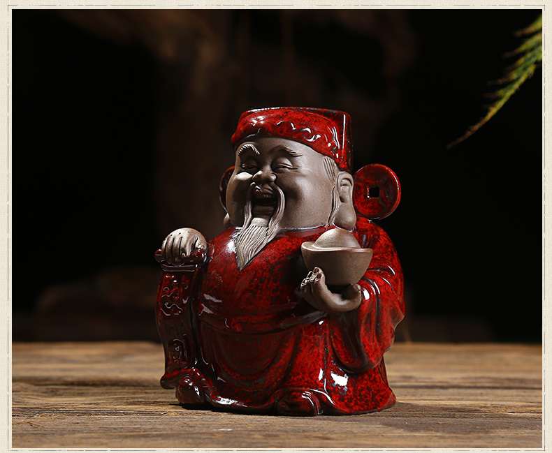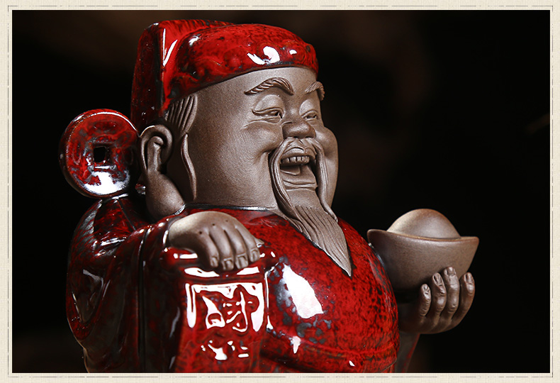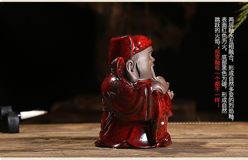 D69-32 財神爺 烈焰釉東方泥土 陶瓷招財擺件 客廳辦公室桌面裝飾工藝品/財神爺D69-32