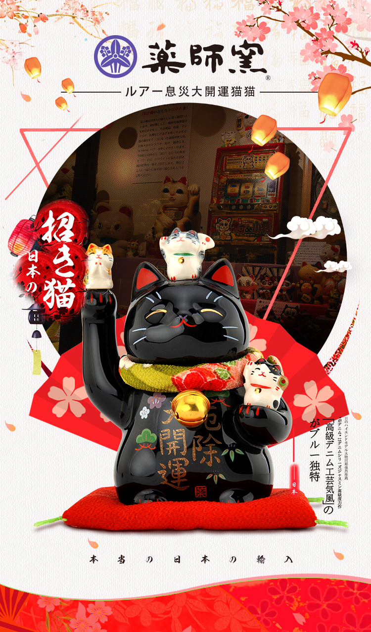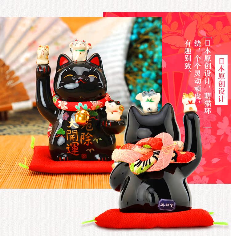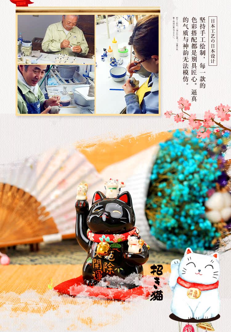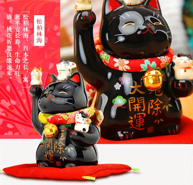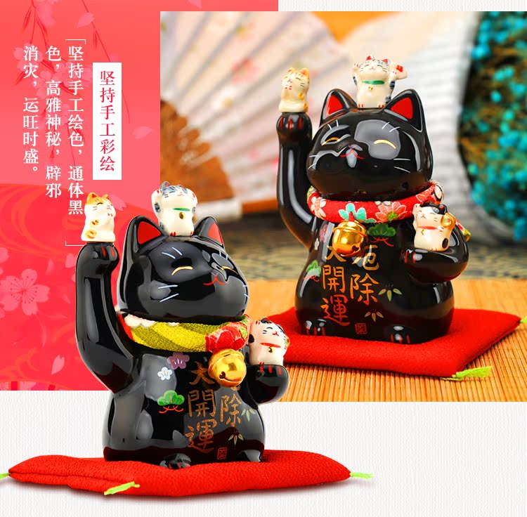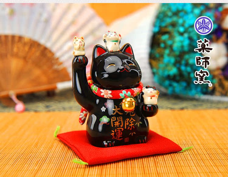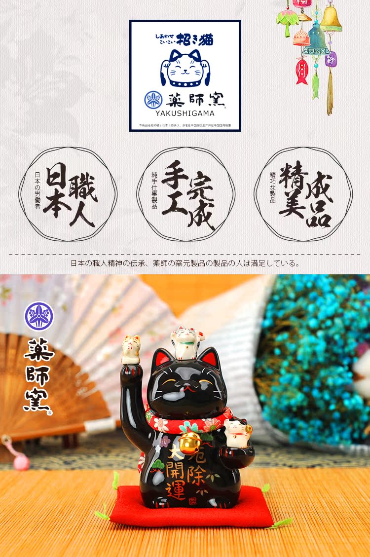 7144-bk高約11cm日本藥師窯黑色辟邪驅災除厄運開業鎮宅大開運陶瓷招財貓擺件禮品