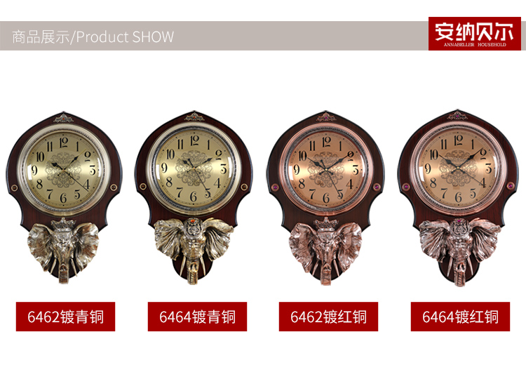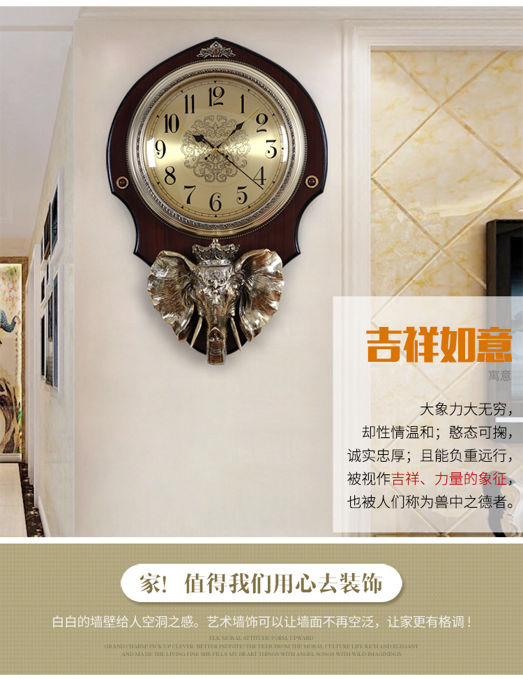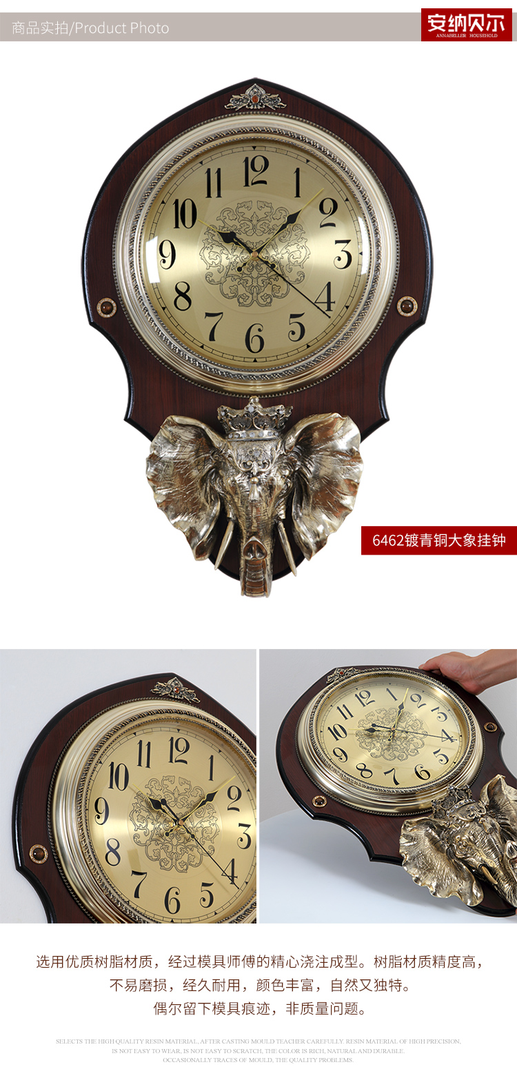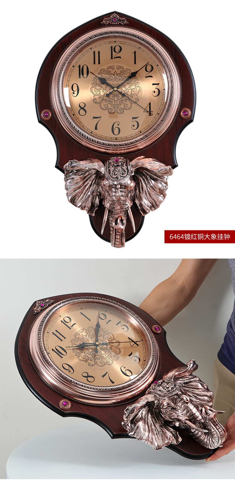 6462鍍青銅20英寸以上高檔美式客廳鐘表歐式豪華復古掛鐘家用大氣掛表創意大象靜音時鐘