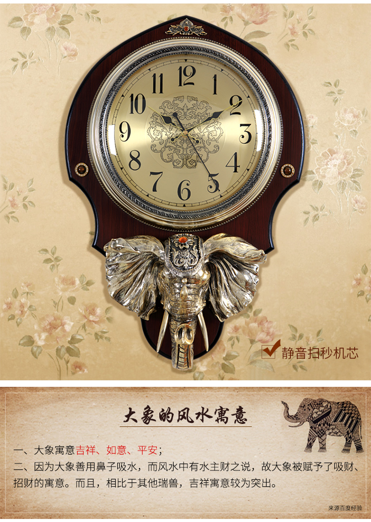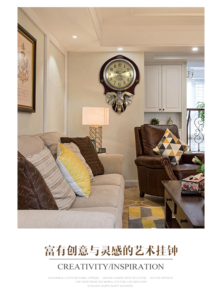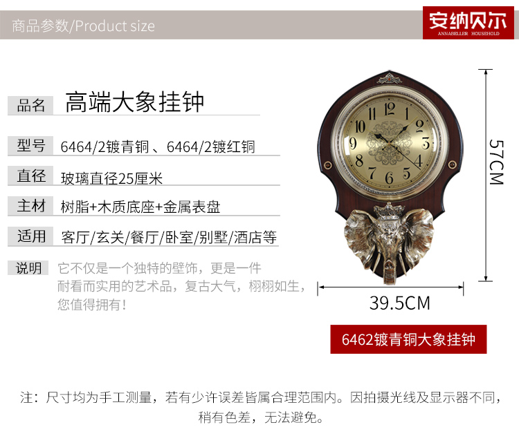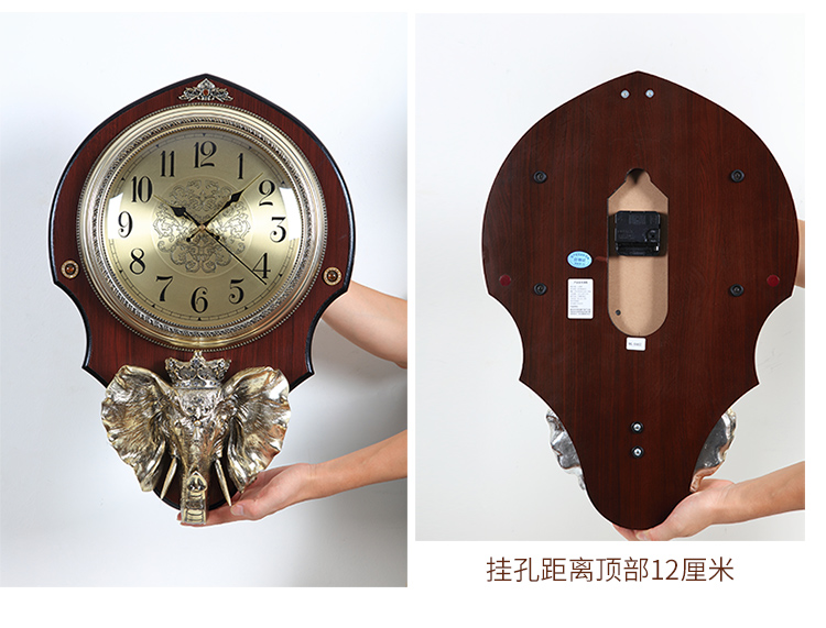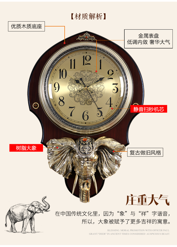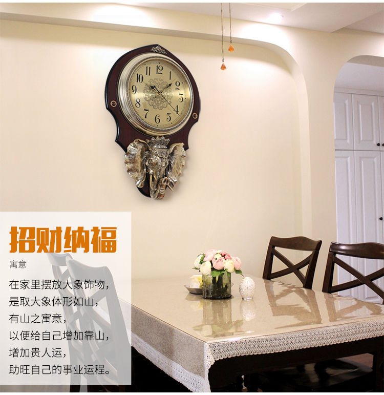 6462鍍青銅20英寸以上高檔美式客廳鐘表歐式豪華復古掛鐘家用大氣掛表創意大象靜音時鐘
