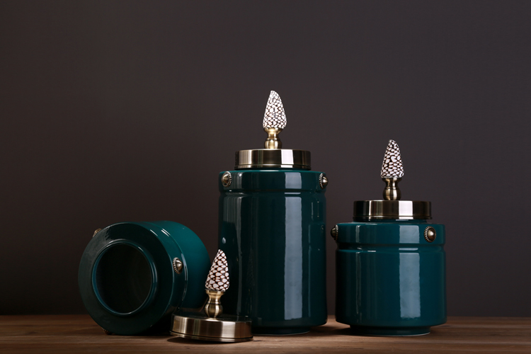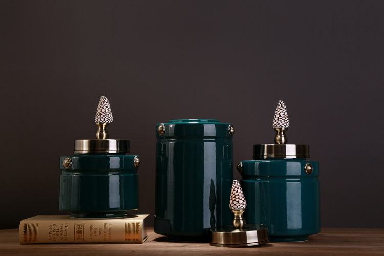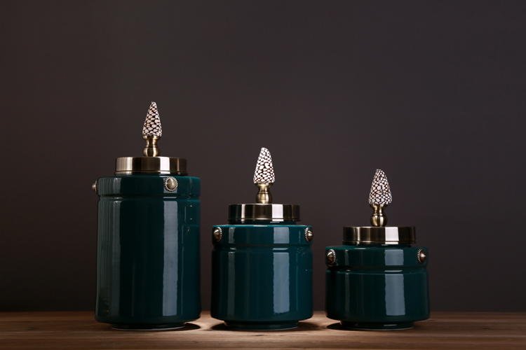 639-123 LB一套歐式復古家居裝飾品陶瓷糖果罐地中海貝殼收納儲物罐美式鄉村擺件