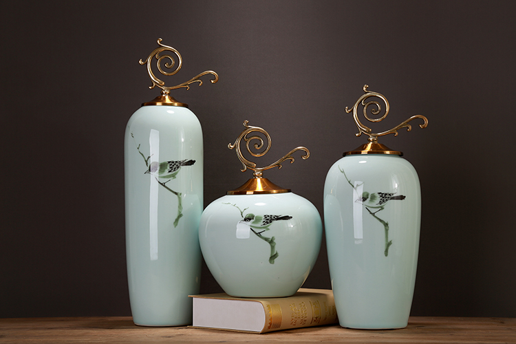 6030A OY大號明清古典彩繪小鳥陶瓷儲物罐裝飾擺設家居擺件客廳玄關電視柜飾品