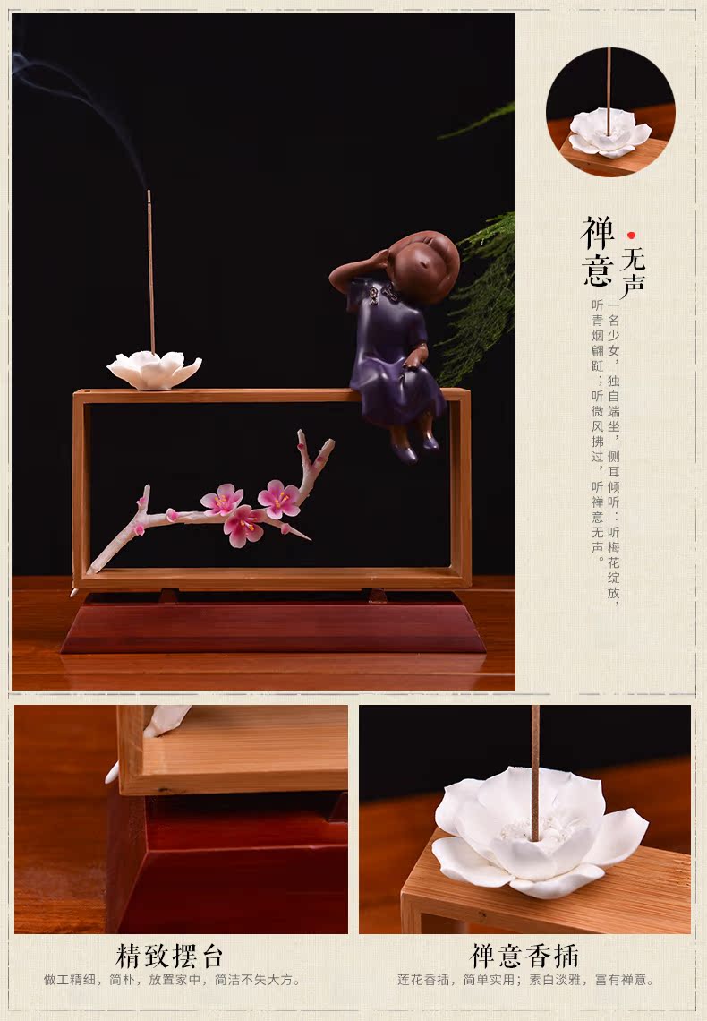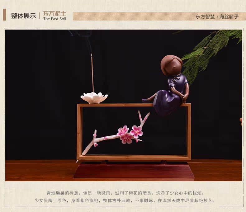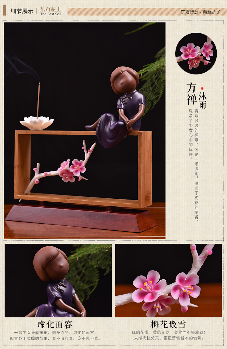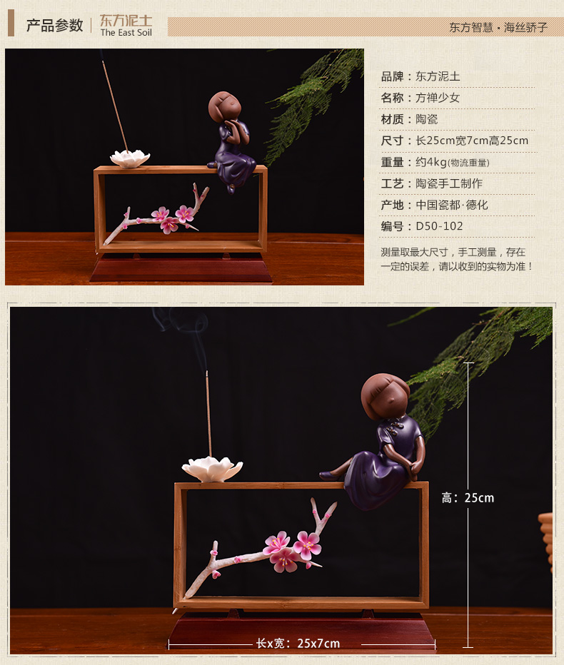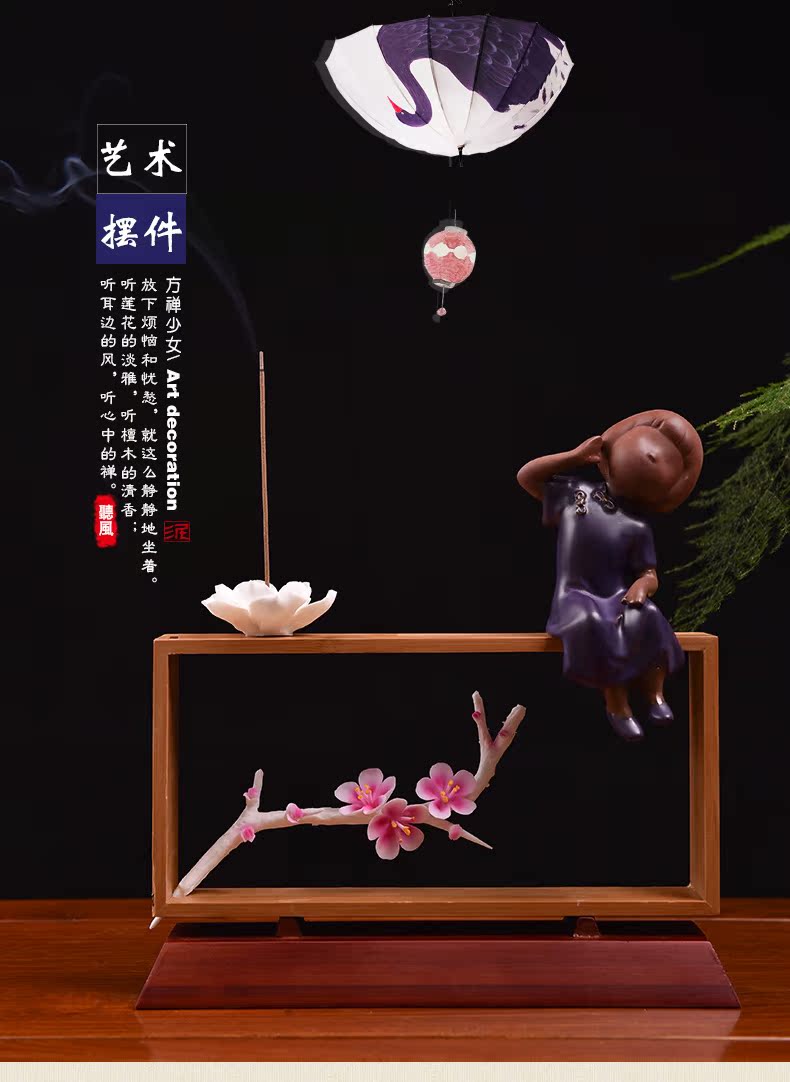 D52-102B 方禪少女-聽風東方泥土 陶瓷禪意擺件 家居茶室桌面裝飾工藝品/方禪少女D52-102