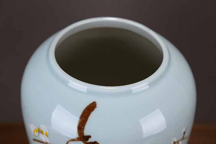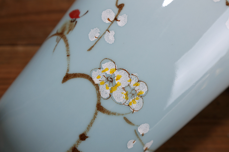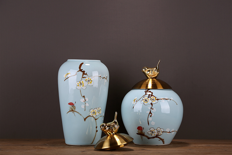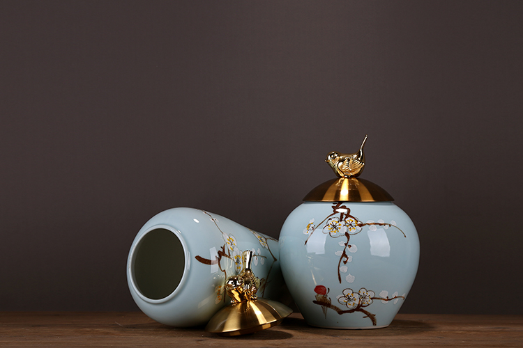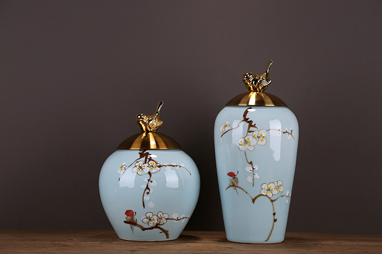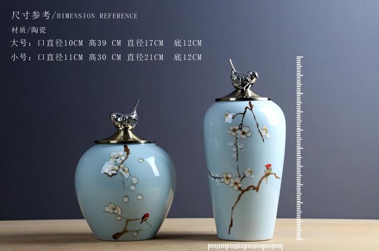 6018B大號 OY新品高端明清古典陶瓷儲物罐裝飾創意擺件梅花金小鳥印花鍍銀擺設