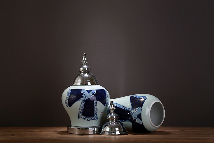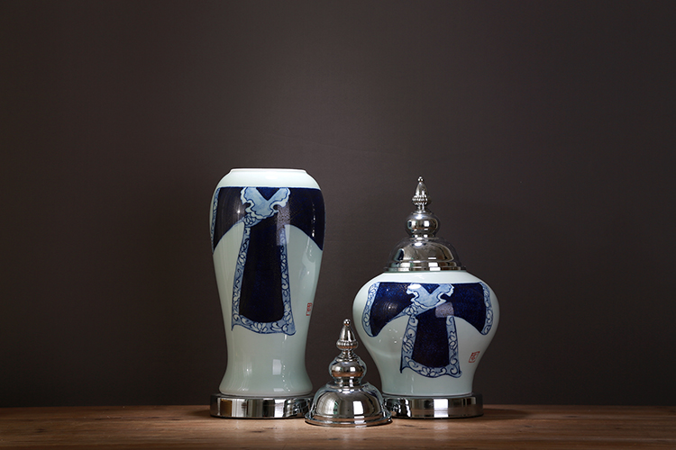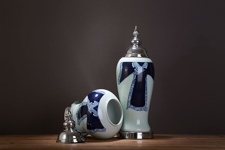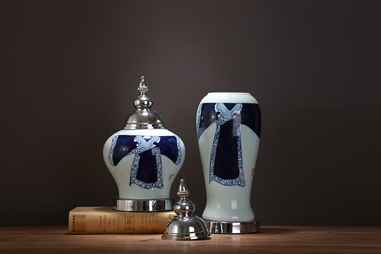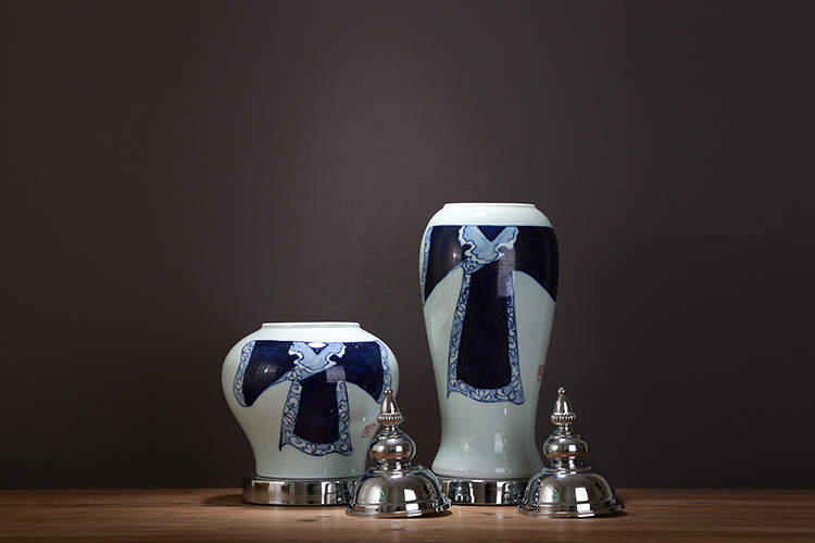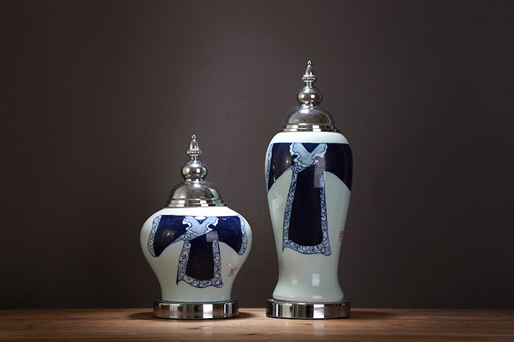 592-1 LB小號中式新古典陶瓷收納罐子 創意手繪印花衣服唐裝儲物罐擺件裝飾品