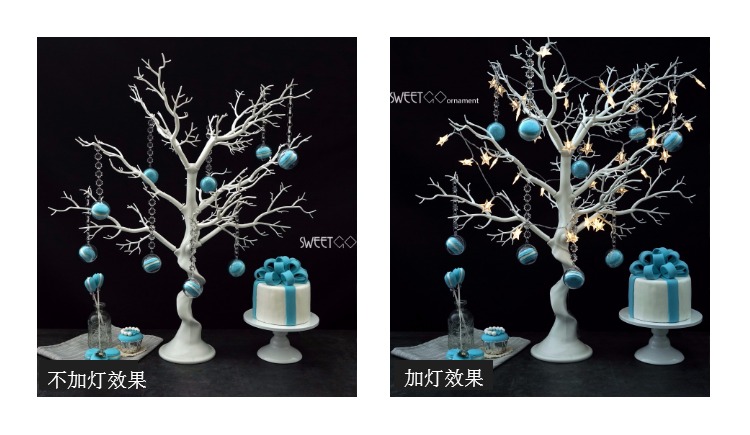 4米燈串送電池婚慶甜品臺擺件 簽到臺裝飾樹 白色仿真樹 櫥窗展示可拆裝許愿樹