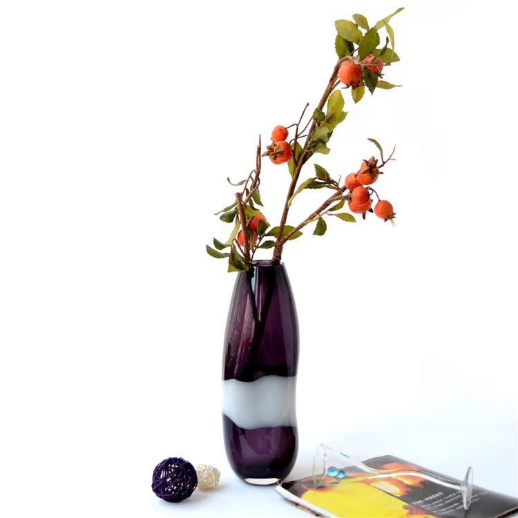406145-3茶色巴洛克】紫色玻璃花瓶落地超大插花器客廳簡約異形個性軟裝飾擺設