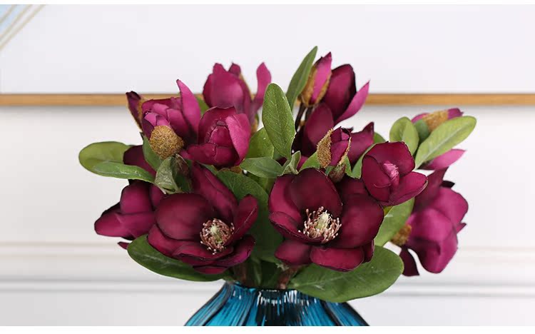 3叉白色小玉蘭1支簡約花藝假花仿真花小玉蘭花客廳絹花花束插花餐桌花瓶家居裝飾花