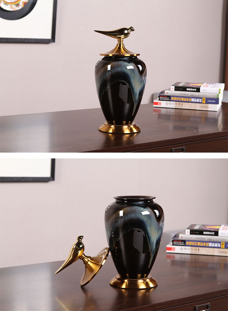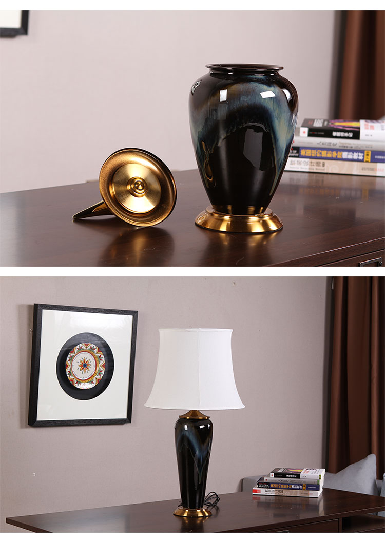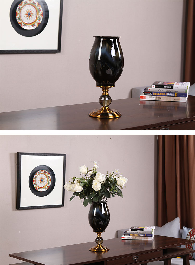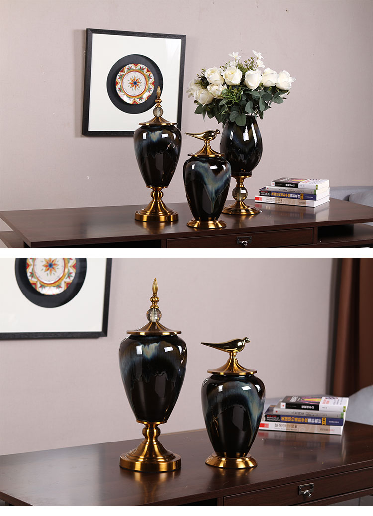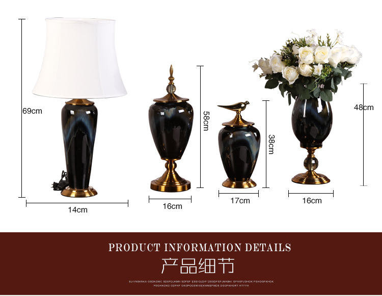 2束白玫瑰【圖片效果】奢華新古典歐式樣板間家居軟裝飾品小鳥深色陶瓷花瓶擺件臺燈套裝