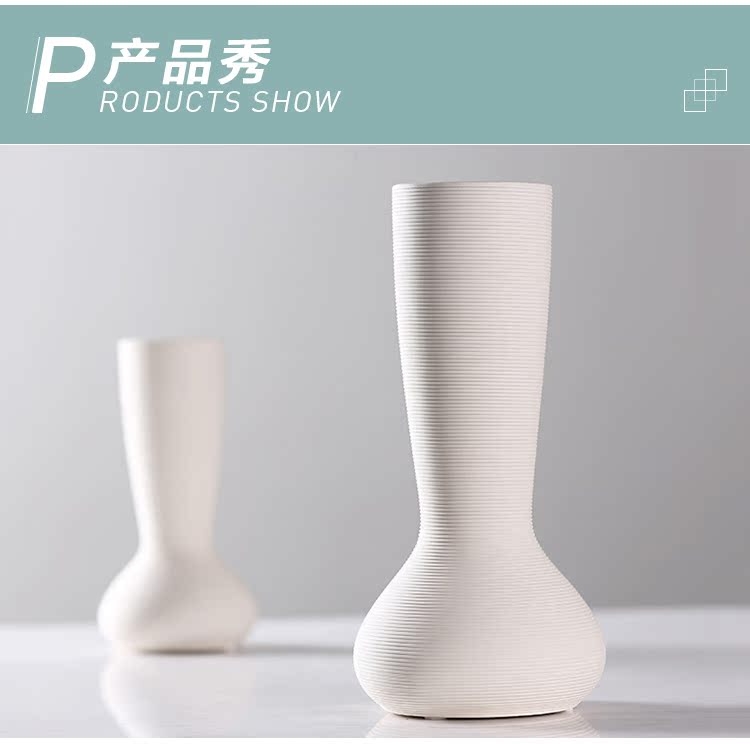 14.5×14.5×30.4cm美空FA020現代簡約白色素燒陶瓷花瓶客廳家居擺設軟裝飾件工藝品