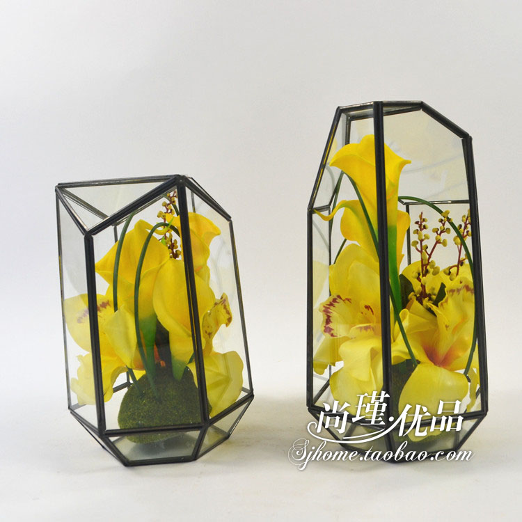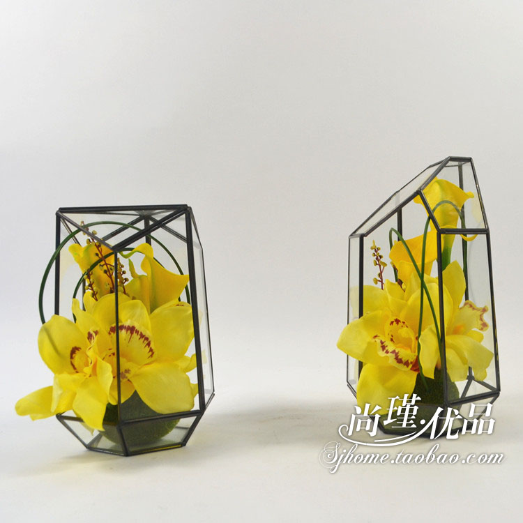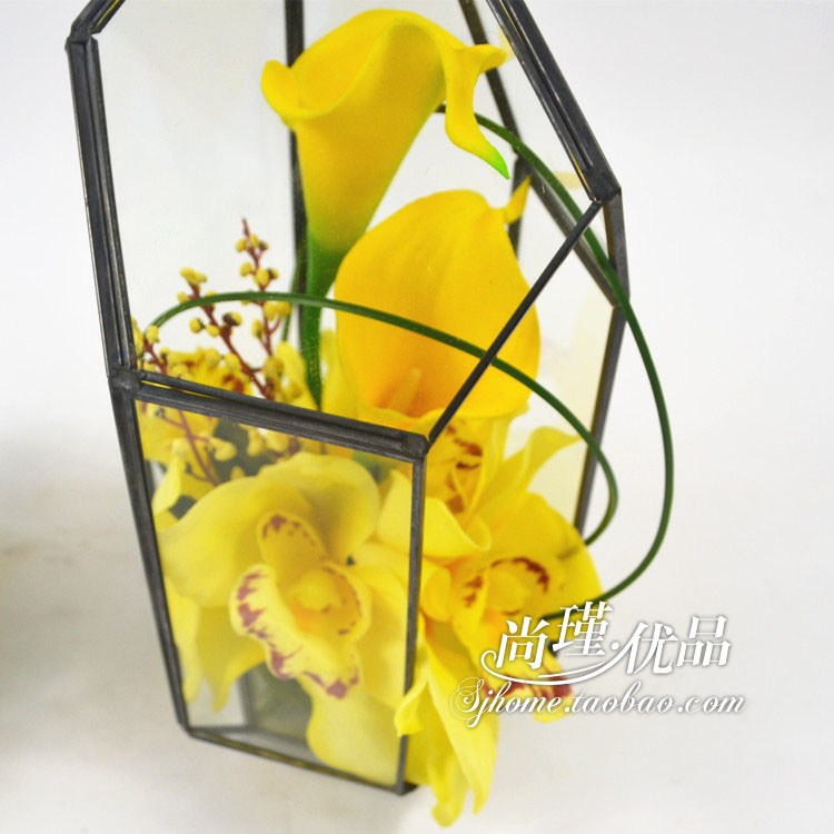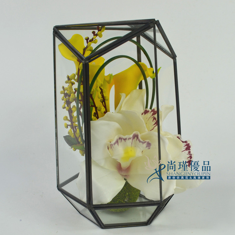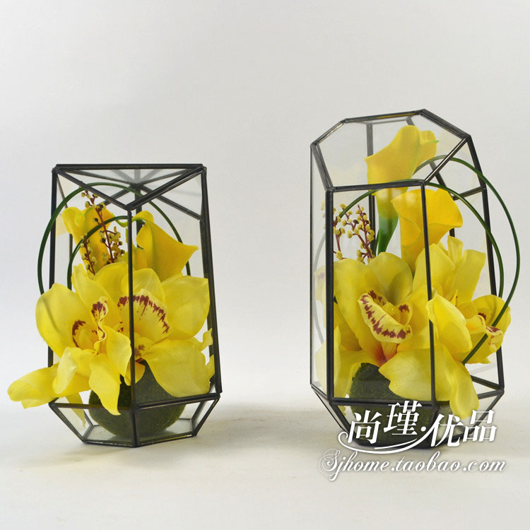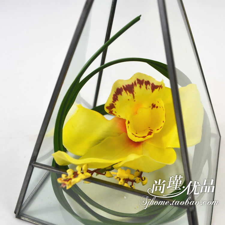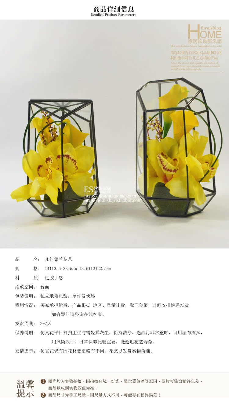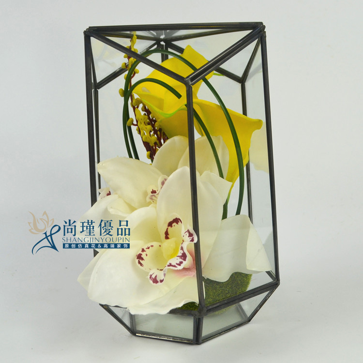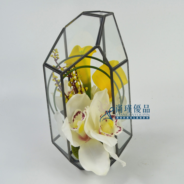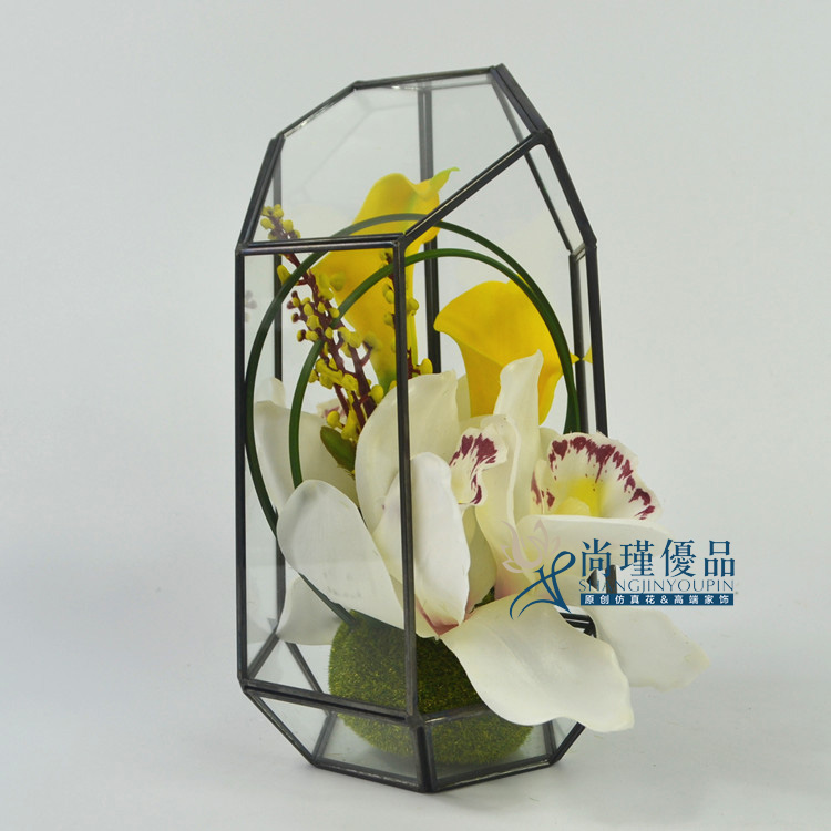 14*14*18cm幾何蕙蘭軟裝插花擺件家居假花客廳餐桌絹花裝飾花仿真花整體花藝