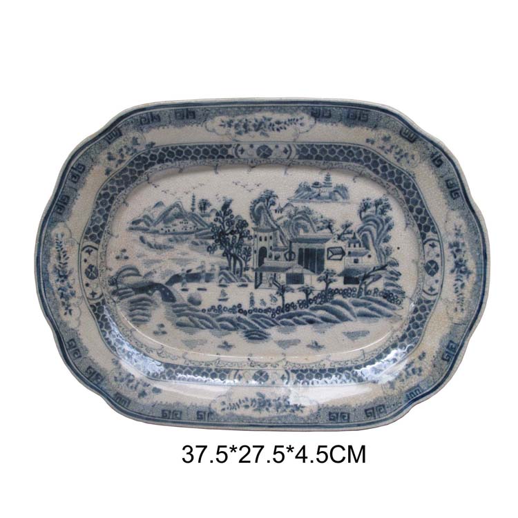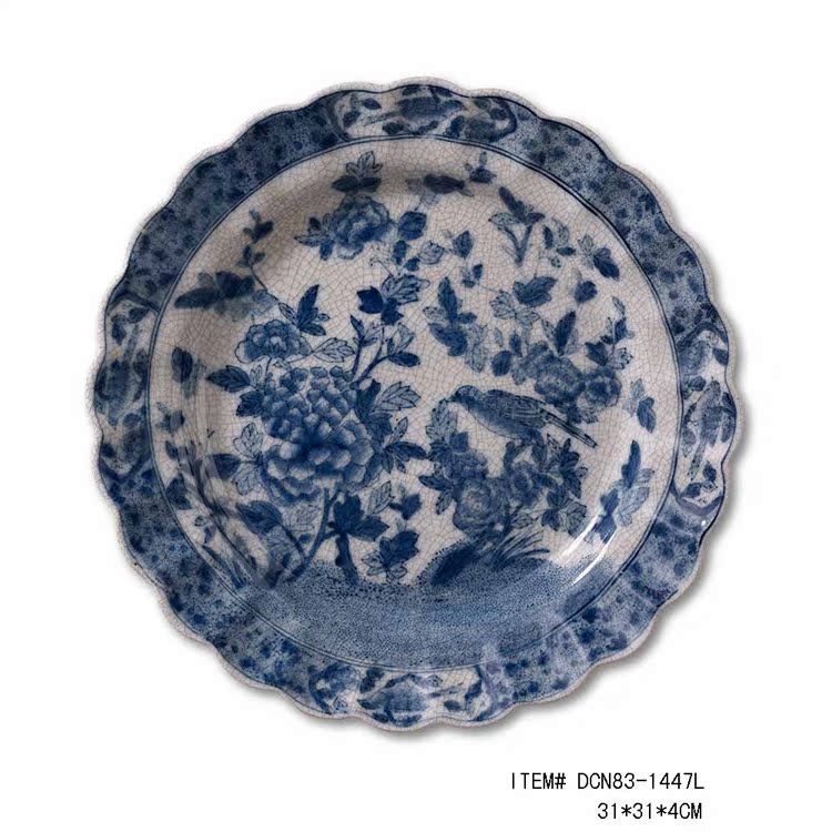 1180(25*19.5*3)歐式美式法式家居飾品擺件軟裝壁飾墻飾仿古青花陶瓷裝飾掛盤1360