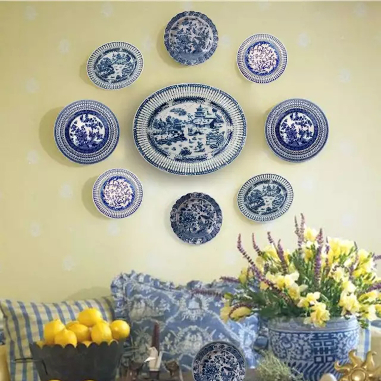 精致的掛盤裝飾而成的墻面畫富有層次感,添加不同的花色呈現出不同的風格。各種顏色,圖案和大小的盤子能夠呈現出不同的效果,或高貴典雅,或行云流水,或俏皮可愛。一個個小小的裝飾盤,掛在墻上或者擺在櫥窗、玄關臺上,都是一道美麗的風景。