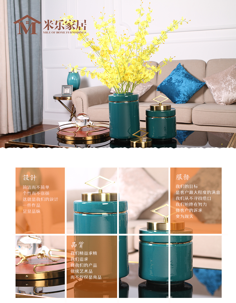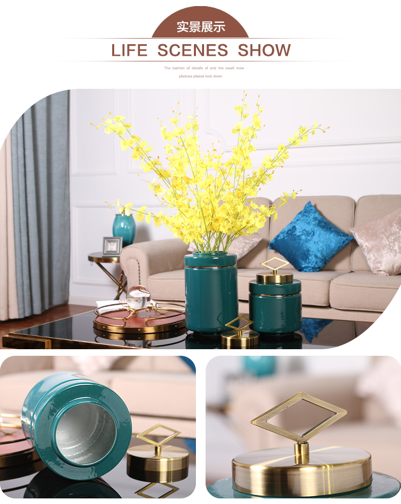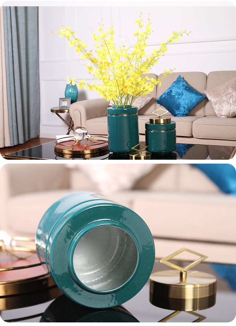 10支黃色跳舞蘭新中式家居裝飾品綠色陶瓷儲物罐花瓶擺件客廳電視柜邊幾陶瓷擺件