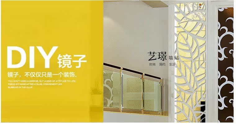 1.5MM厚金色鏡面背膠小藝璟 樹葉亞克力水晶鏡面立體墻貼 客廳電視背景墻影視墻裝飾貼