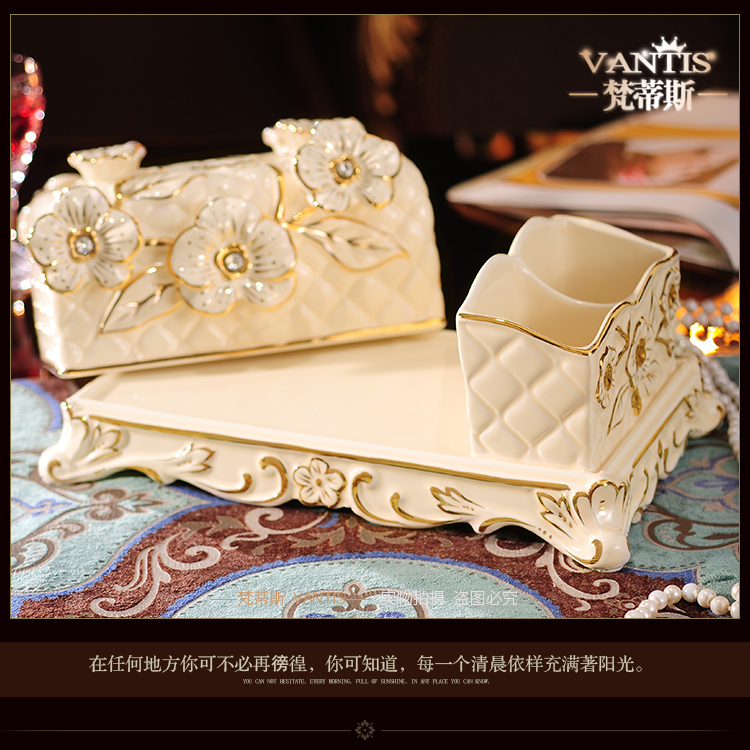 07003鑲鉆紙巾盒歐式陶瓷多功能紙巾盒奢華創意客廳茶幾抽紙盒復古家居裝飾品擺件