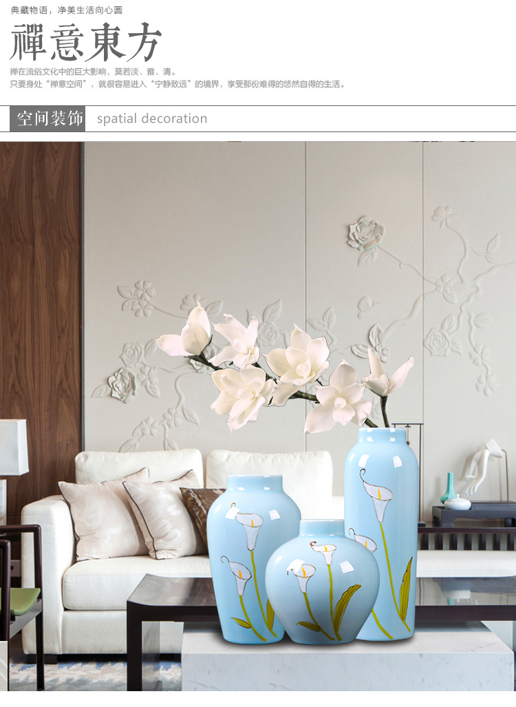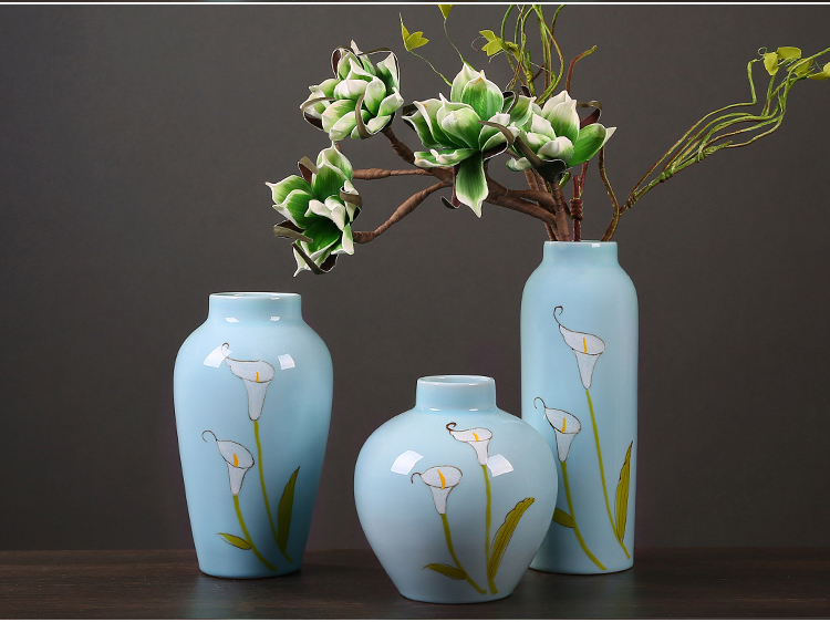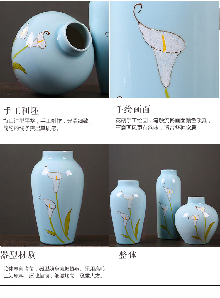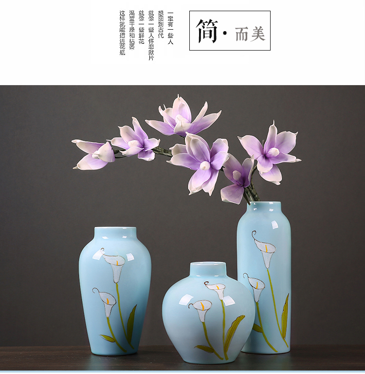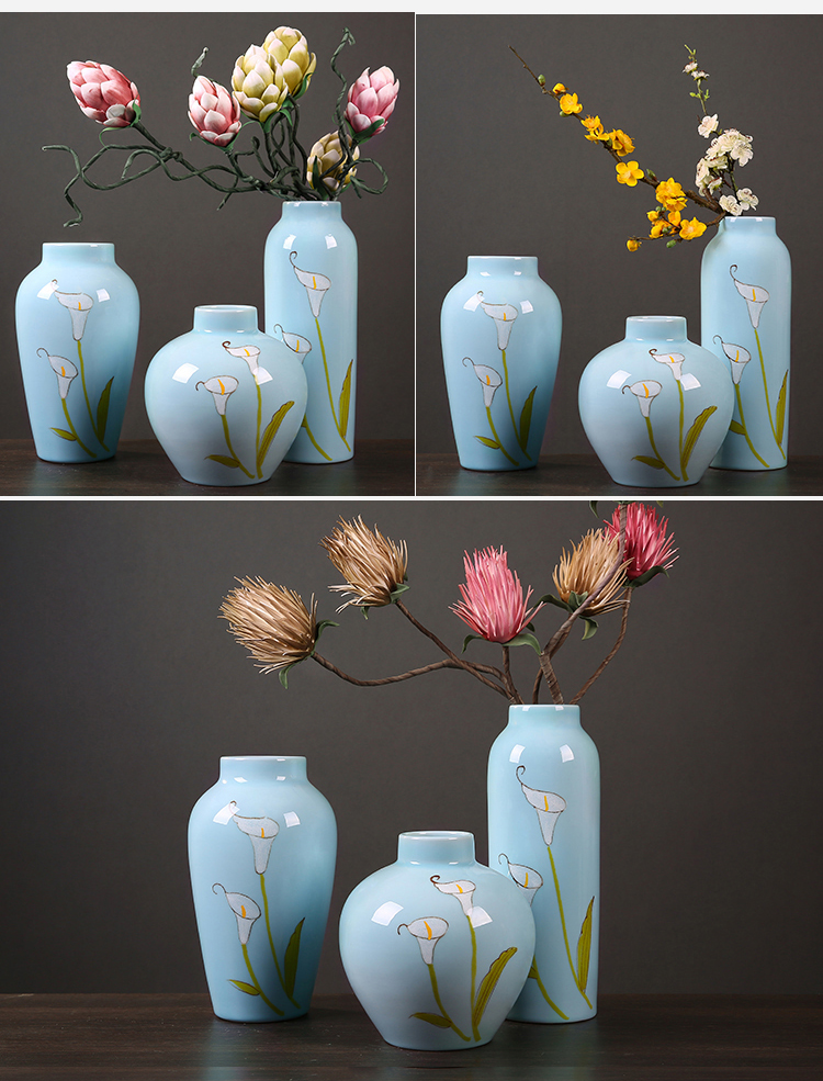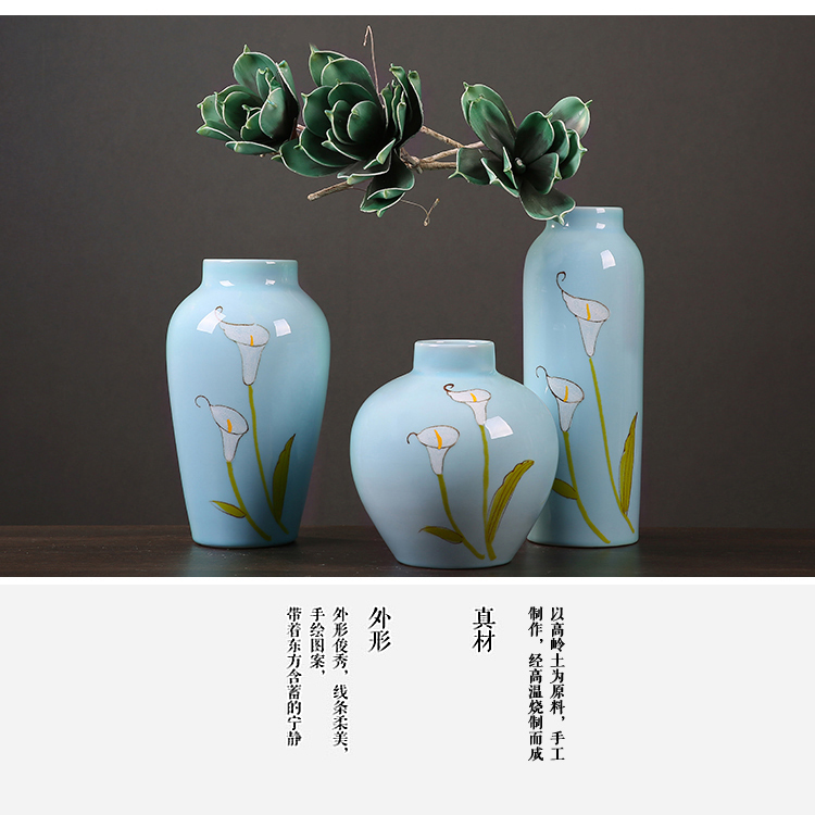 【三件套】不含花現代新中式手繪喇叭花陶瓷花瓶家居飾品電視柜擺件玄關樣板房軟裝