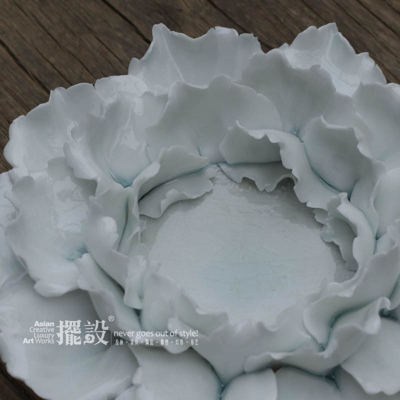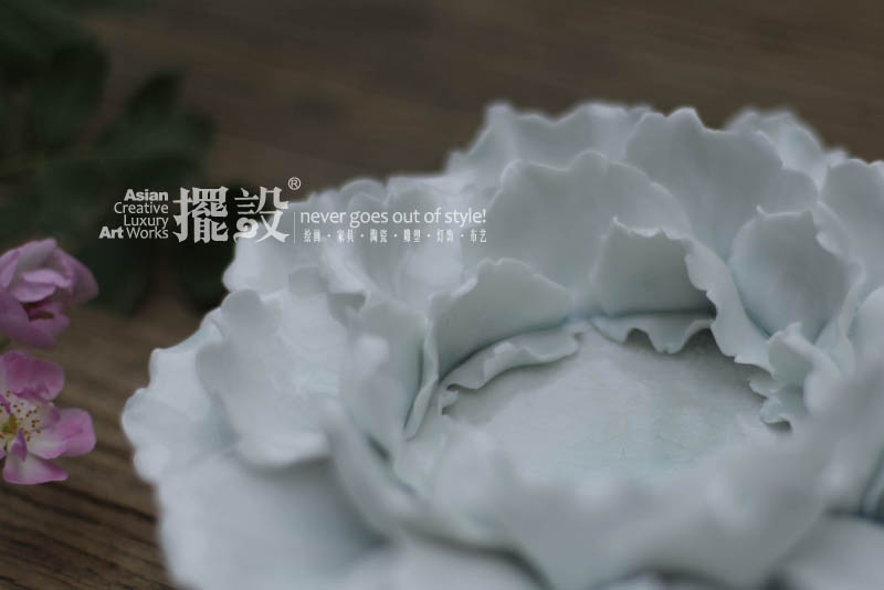 [擺設.手做瓷]影青手工陶瓷牡丹捏制裝飾擺件燭臺國色天香禮品