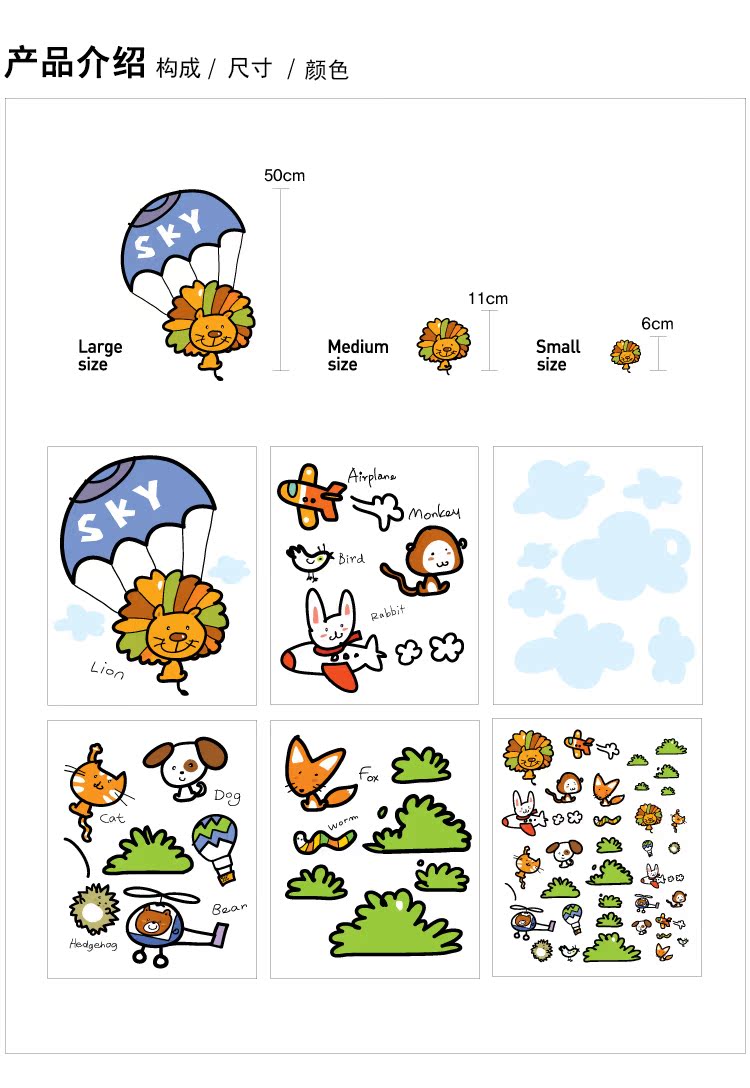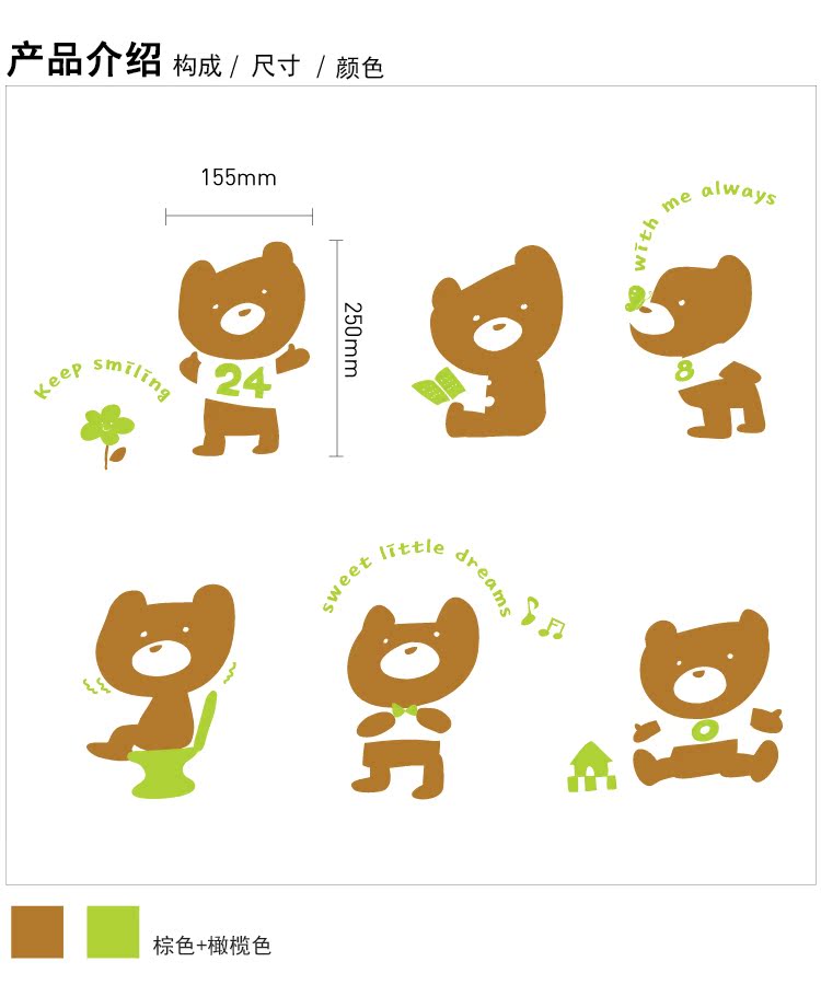 可愛的小熊韓國想象后兒童房可愛動物量身尺地圖客廳臥室圖形貼紙BEST10