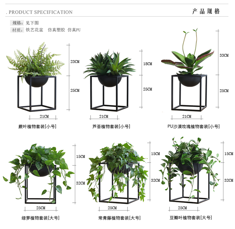 蘆薈植物套裝[小號]西西里仿真綠植套裝 北歐簡約植物花藝商鋪櫥窗辦公室軟裝飾擺件