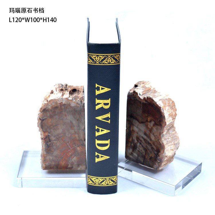 樹化石書檔(水晶底座)樣板房裝飾金屬擺件軟裝飾品不銹鋼工藝品創意家居書房樹化石書擋