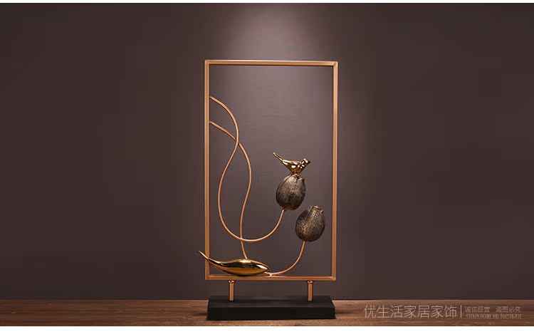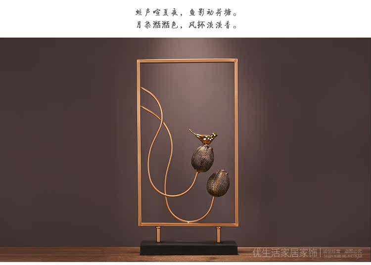 HL-316-AT新古典現代復古客廳書房玄關禪意招財荷花合金創意擺件家居裝飾品
