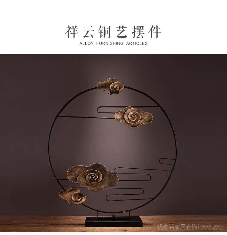 HL-017-ZN新古典圓圈祥云禪意擺件家居家飾新中式玄關書房客廳軟裝工藝品