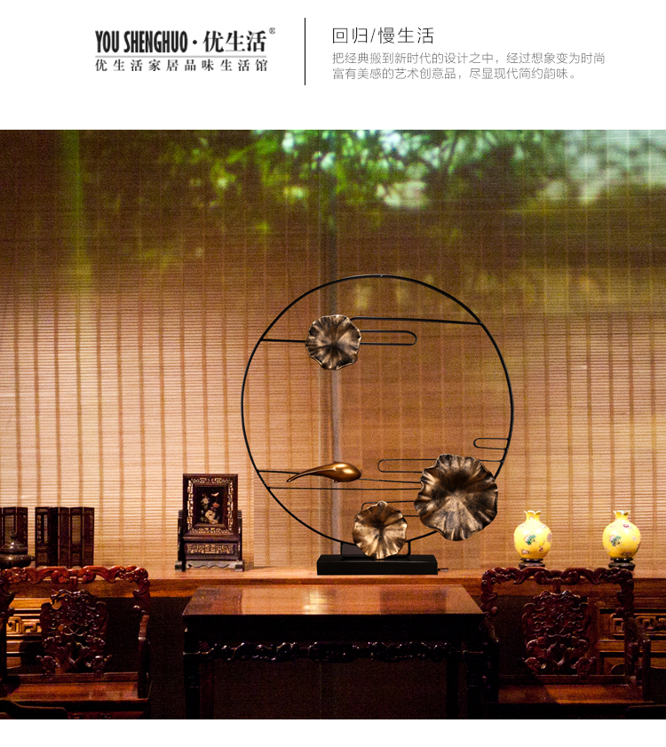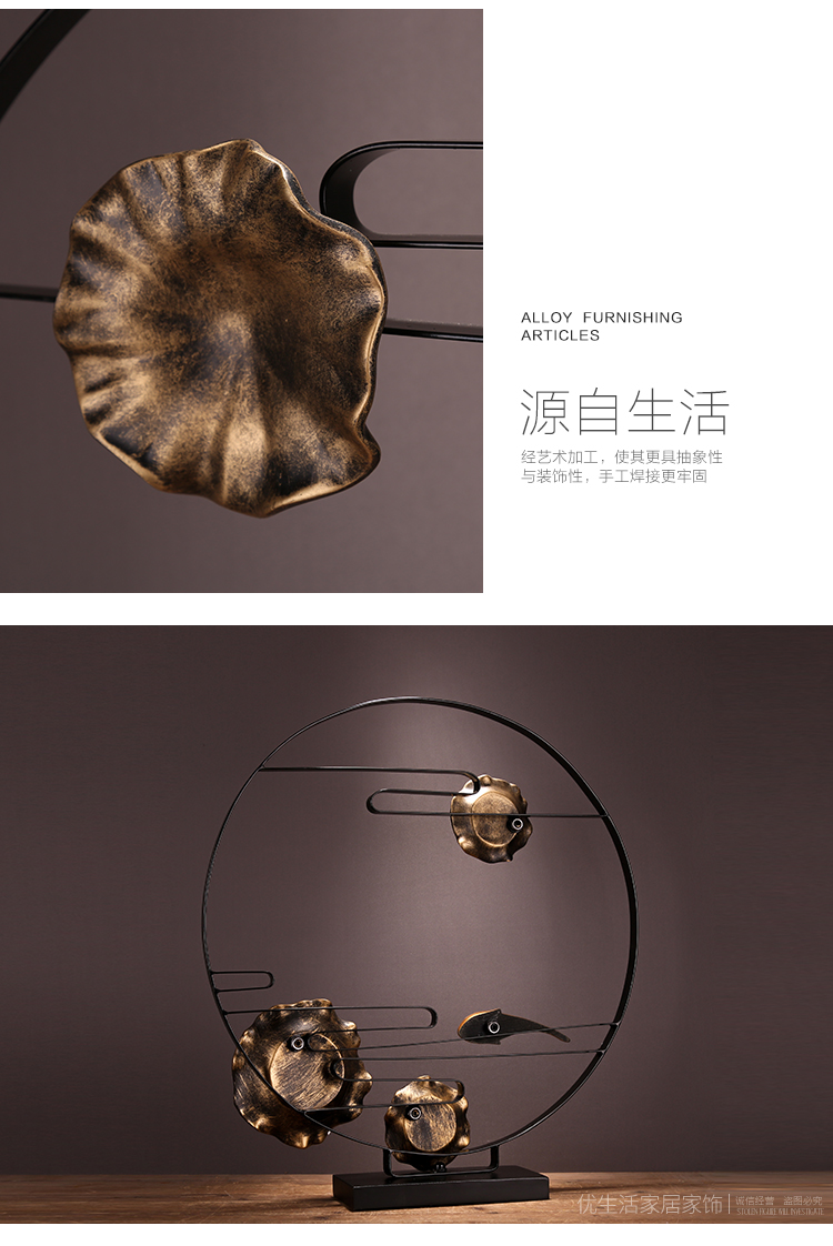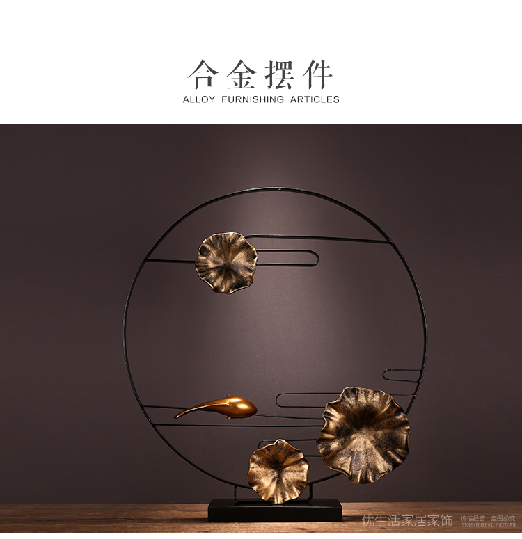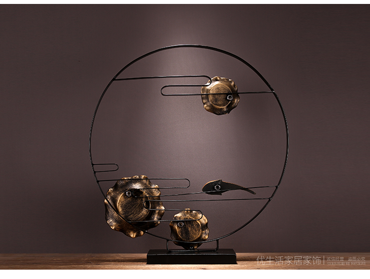 HL-016-AT圓圈禪意開業送禮擺件荷花魚家居家飾裝修新房書房玄關裝飾品創意