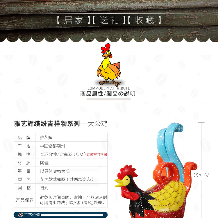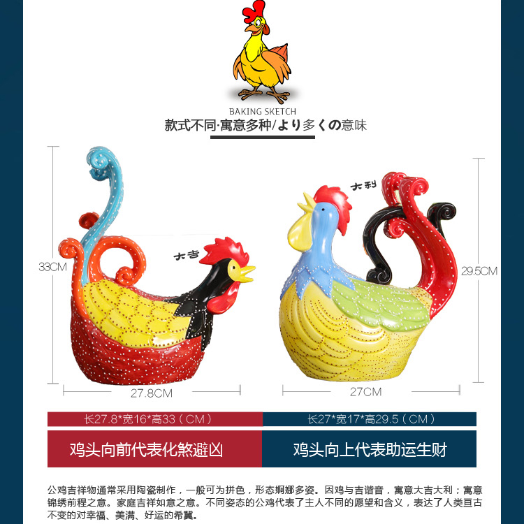 繽紛吉祥物-公雞:大吉歐式陶瓷日本動物大公雞家居擺件高檔結婚禮物品開業喬遷裝飾韓式