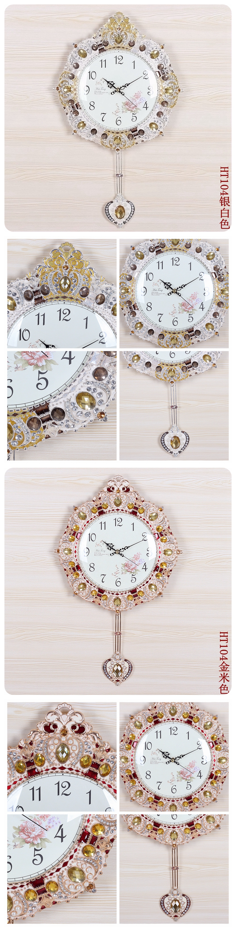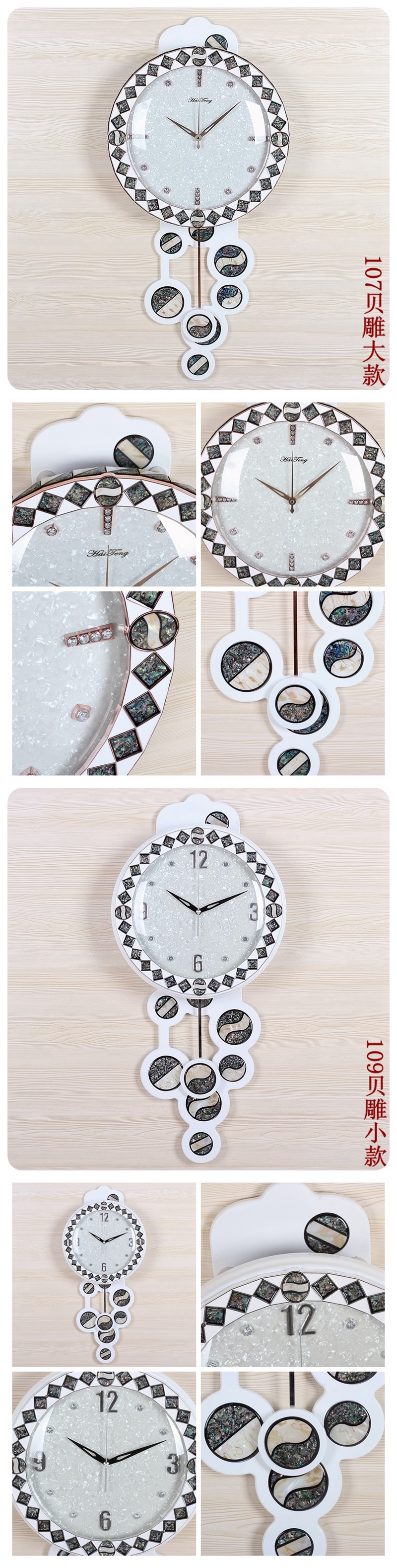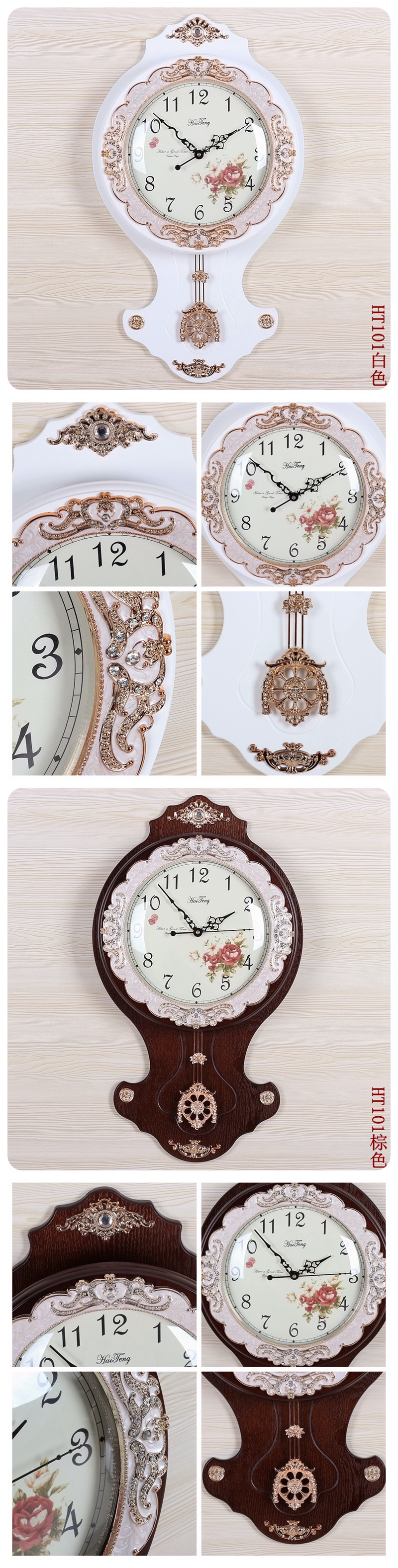 HT111白色其他歐式田園靜音創意搖擺掛鐘 金屬鐵藝鐘表 現代時尚客廳石英鐘