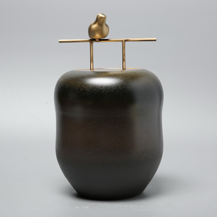 中號一個現代新中式禪意陶瓷銅件儲物罐擺件創意酒店展廳樣板房間軟裝飾品