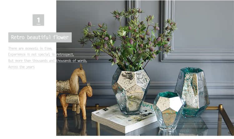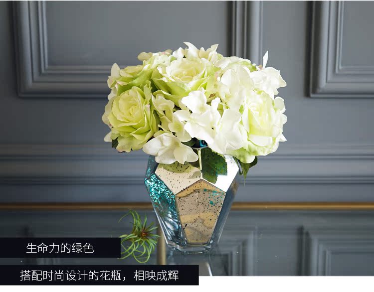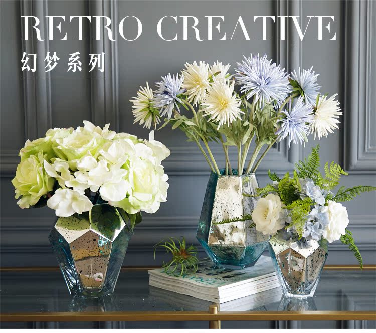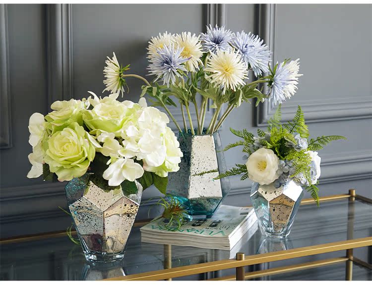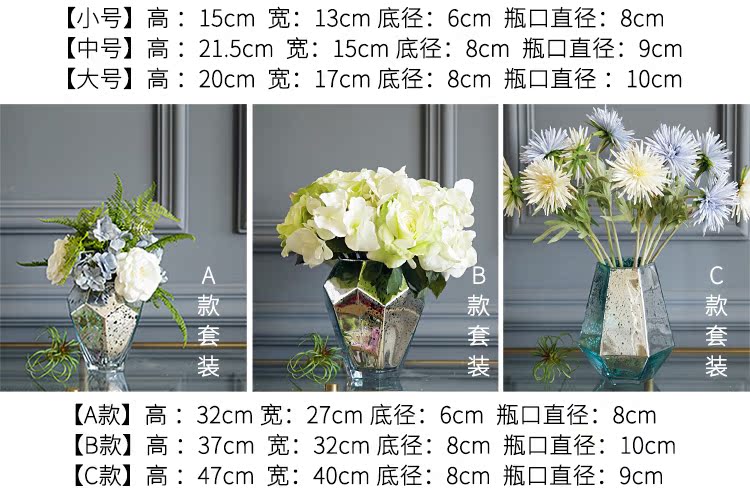 C款套裝:中號+蟹爪菊美第奇 幻夢花藝套裝仿真花束 假花 裝飾花玻璃擺件 客廳餐桌花瓶