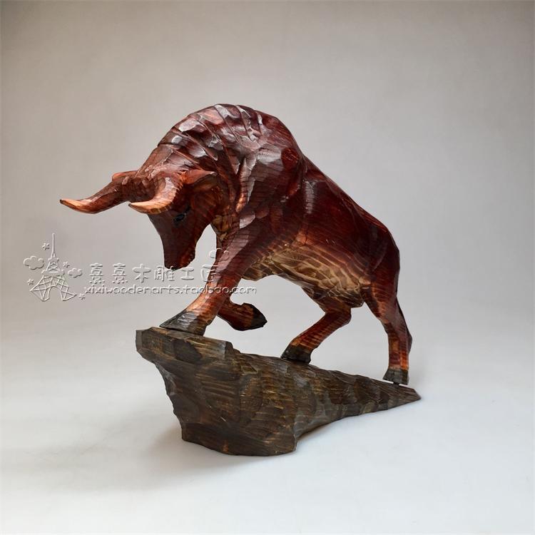 純實木手雕刻牛氣沖天動物風水擺件禮品定制