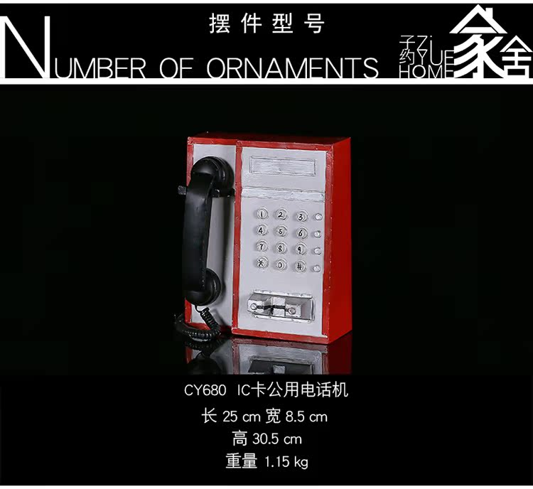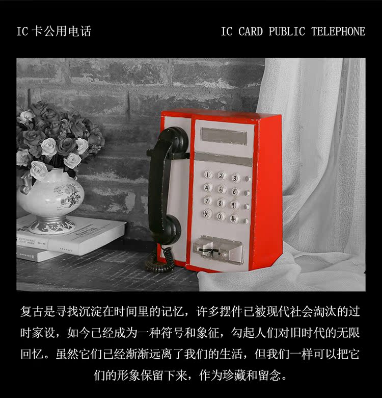 CY680 IC卡公用電話英倫歐式復古公用插卡模型鐵藝壁掛裝飾工藝品服裝店櫥窗擺件