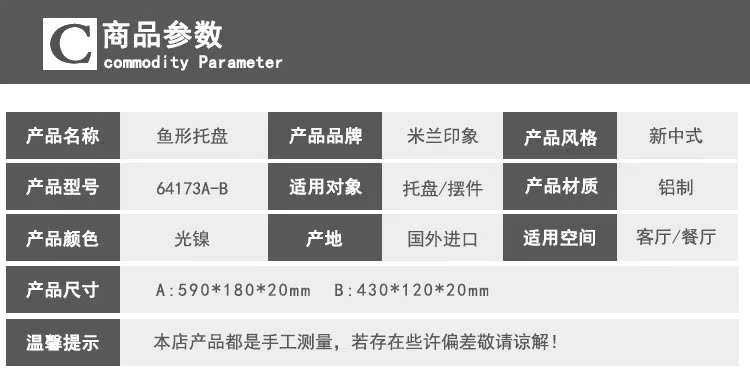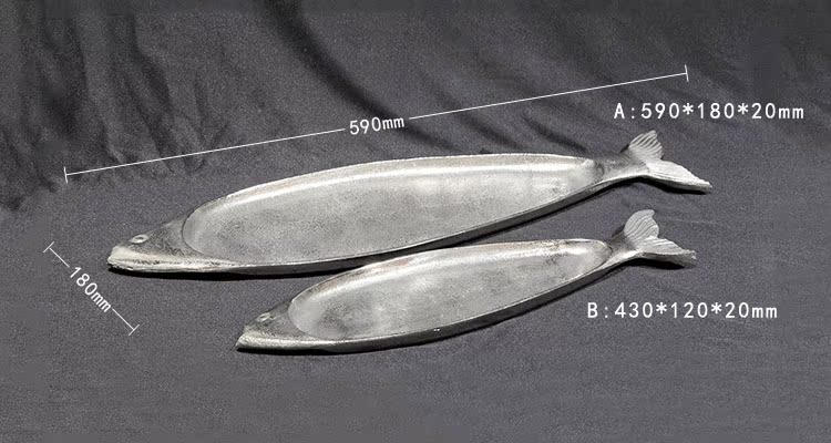 B新中式東南亞創意鋁制魚形托盤桌面擺件樣板房裝飾品擺設光鎳