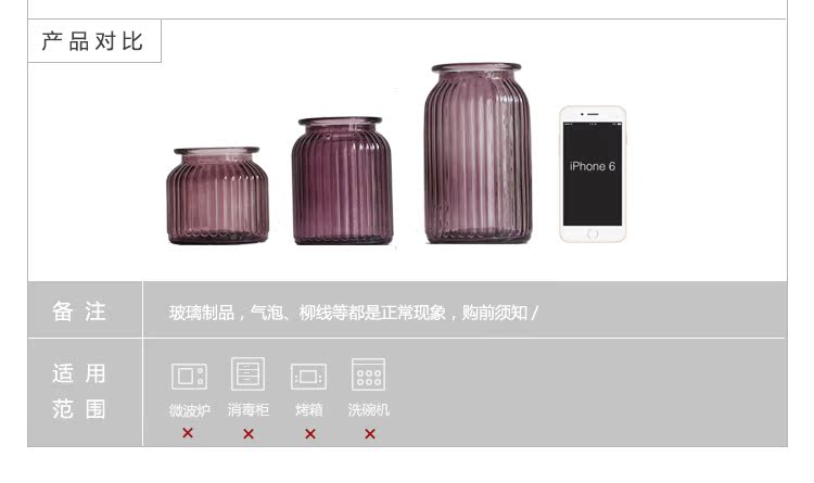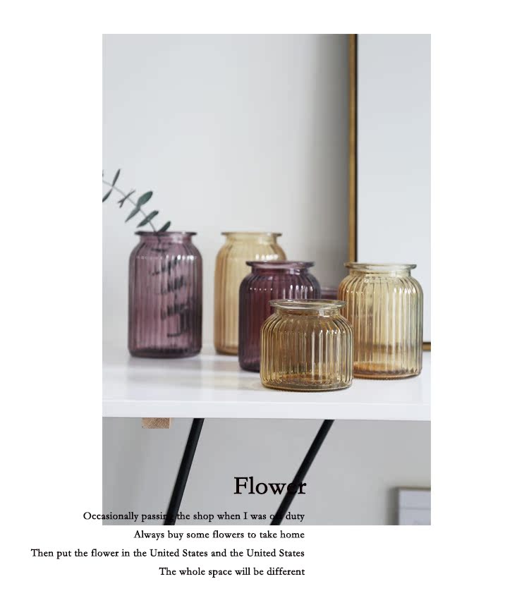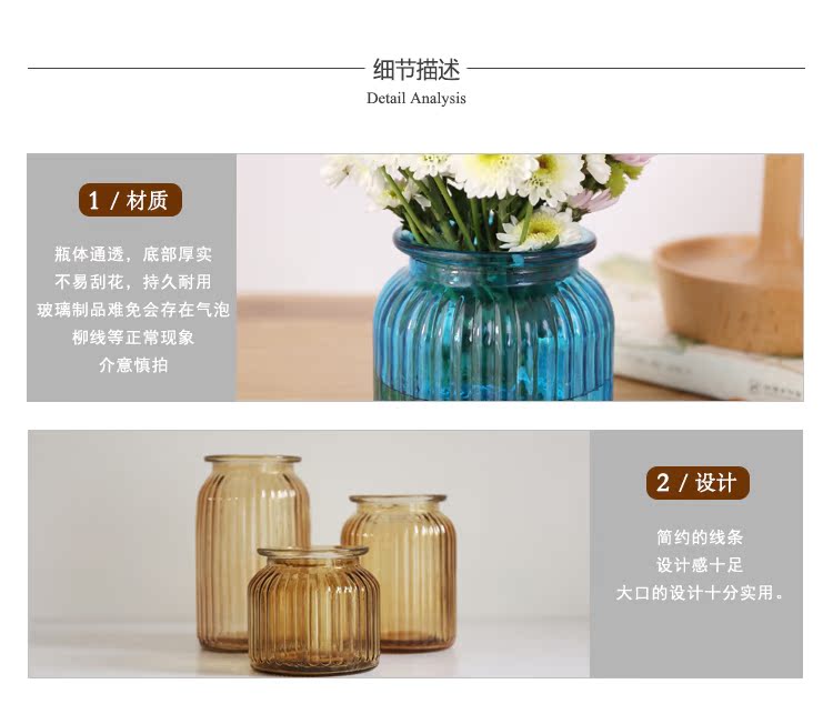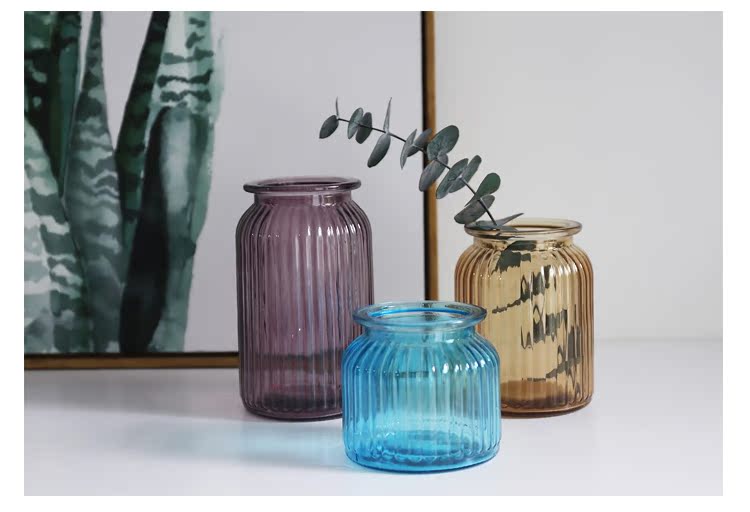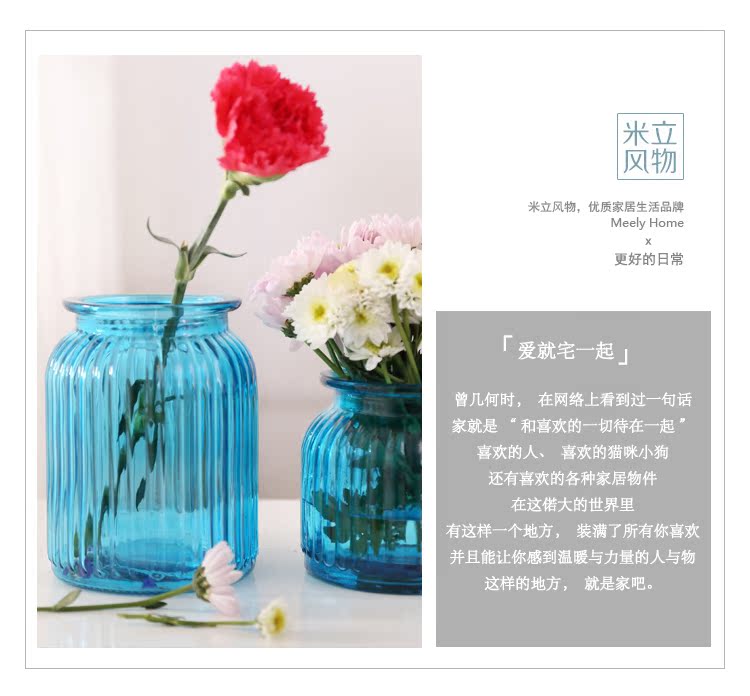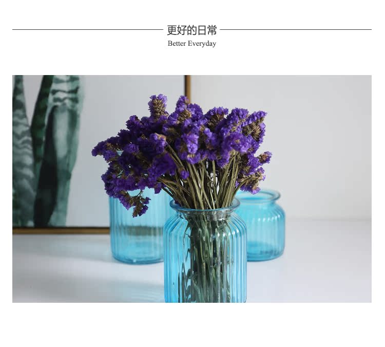藍色三件套花瓶米立風物三色玻璃花瓶家居擺件透明花瓶條紋風格花瓶多規格花瓶