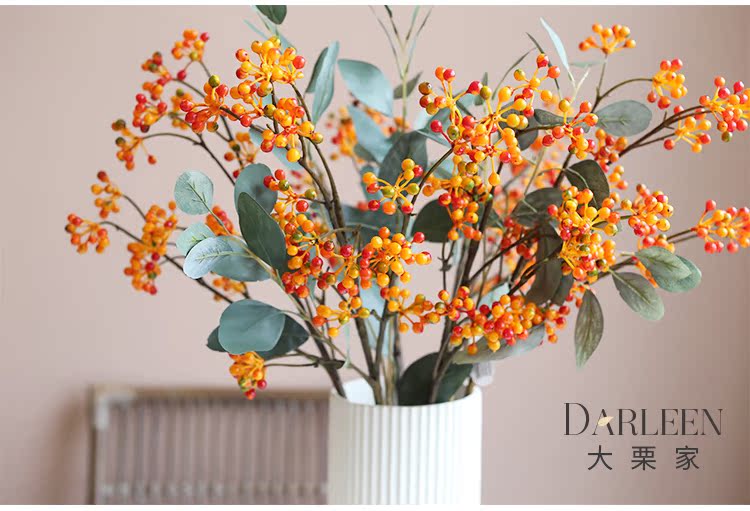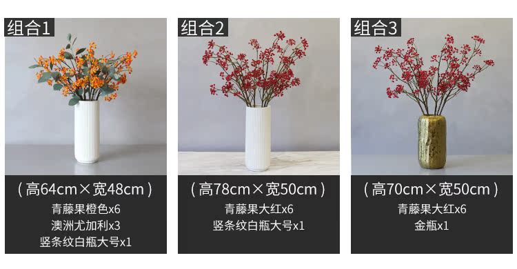 澳洲尤加利大栗家 現代家居假花擺件 仿真花青藤果紅果果 簡約家飾花藝套裝