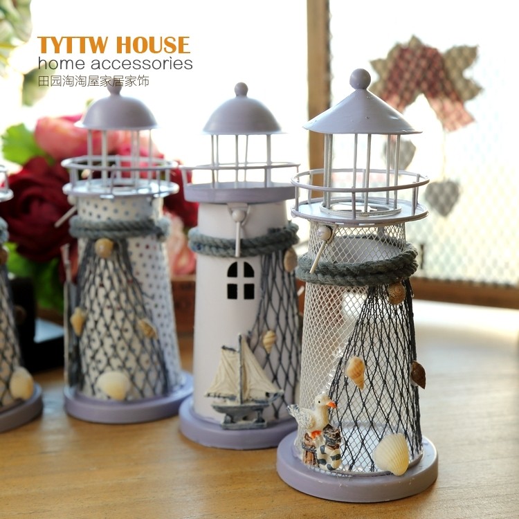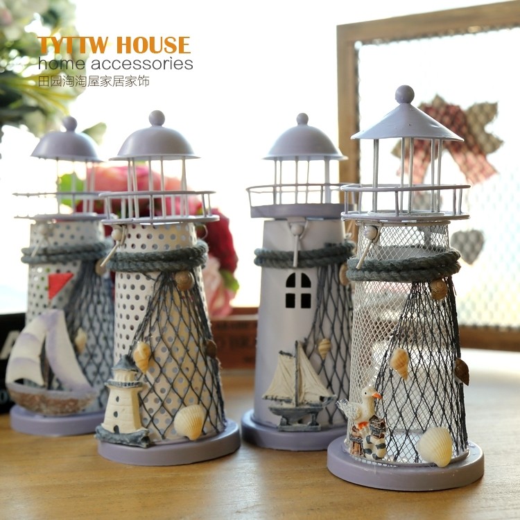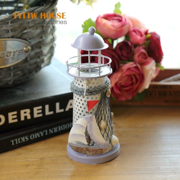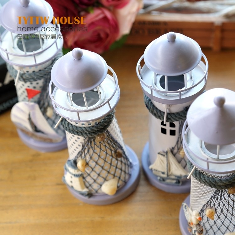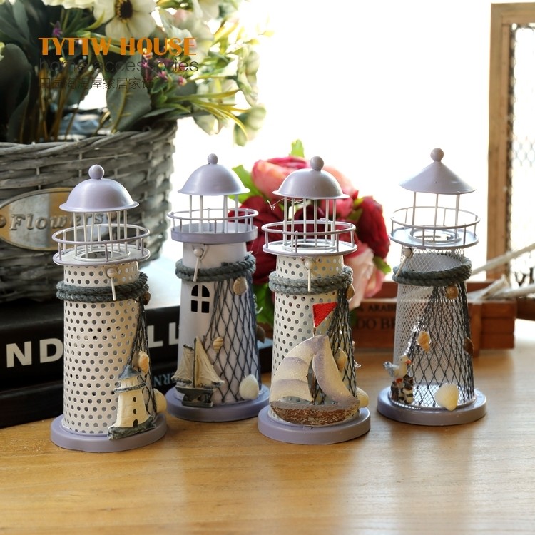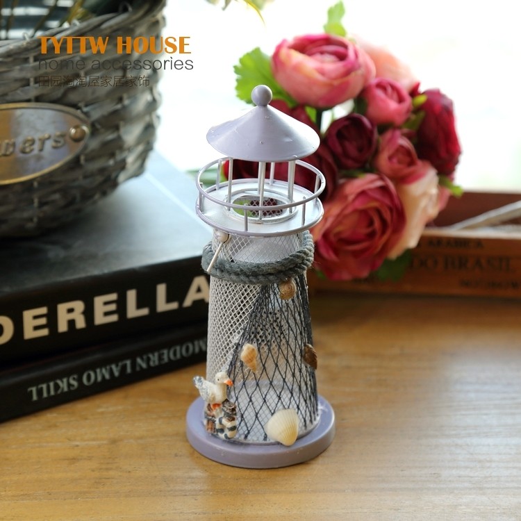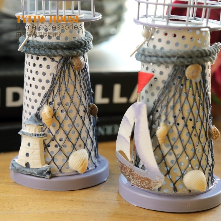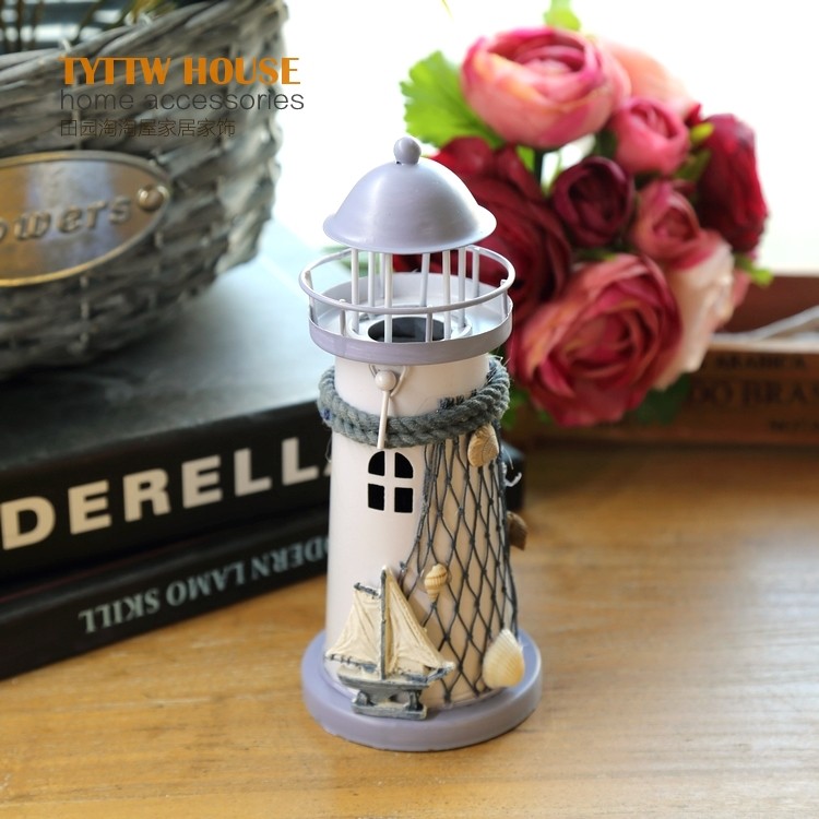 地中海風格裝飾鐵皮燭臺電子燈塔 創意海洋裝飾擺設婚慶禮品