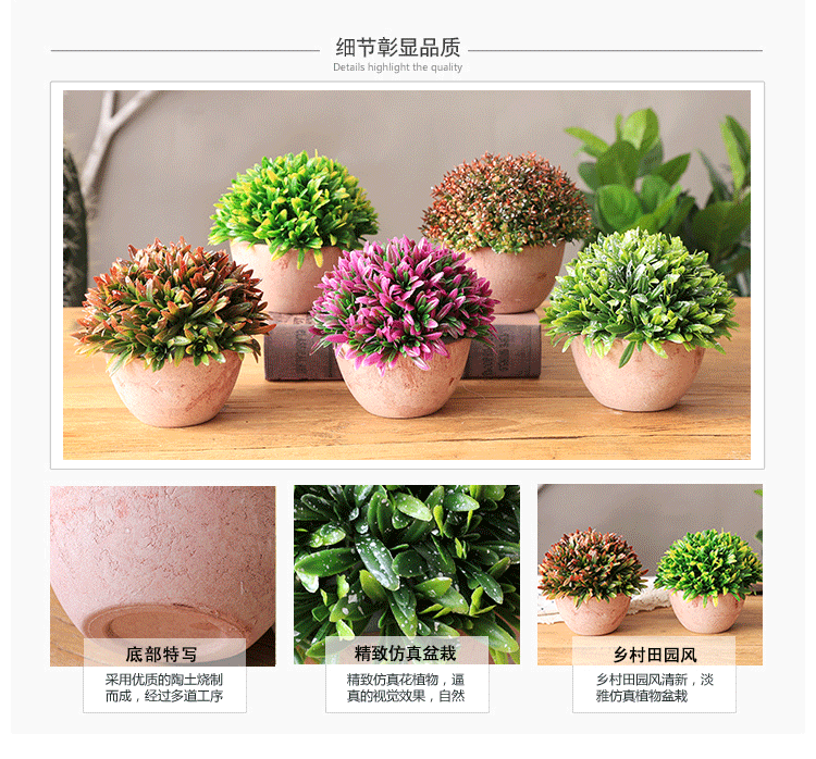 綠色帶點-青草田園復古家居塑料花假花植物小盆栽仿真綠植裝飾品擺件創意小盆景