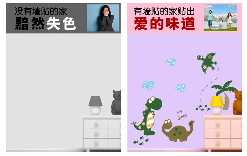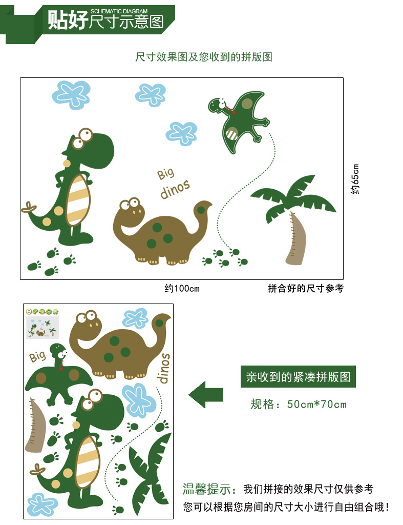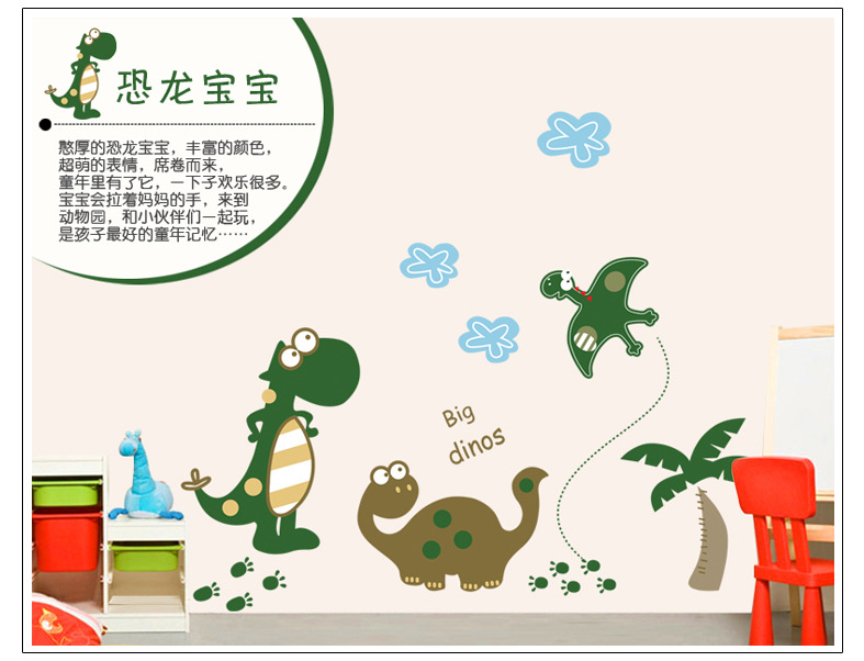綠色恐龍大綠色可愛恐龍墻貼紙兒童房創意 幼稚園客廳臥室玻璃墻貼畫