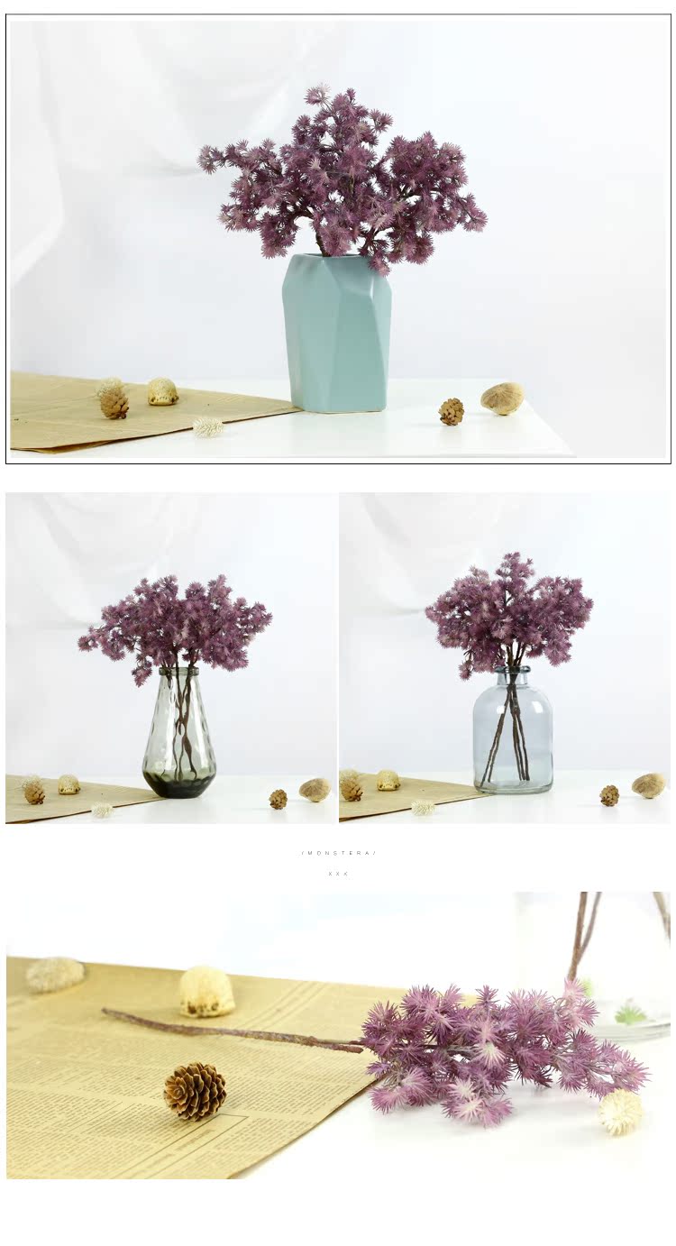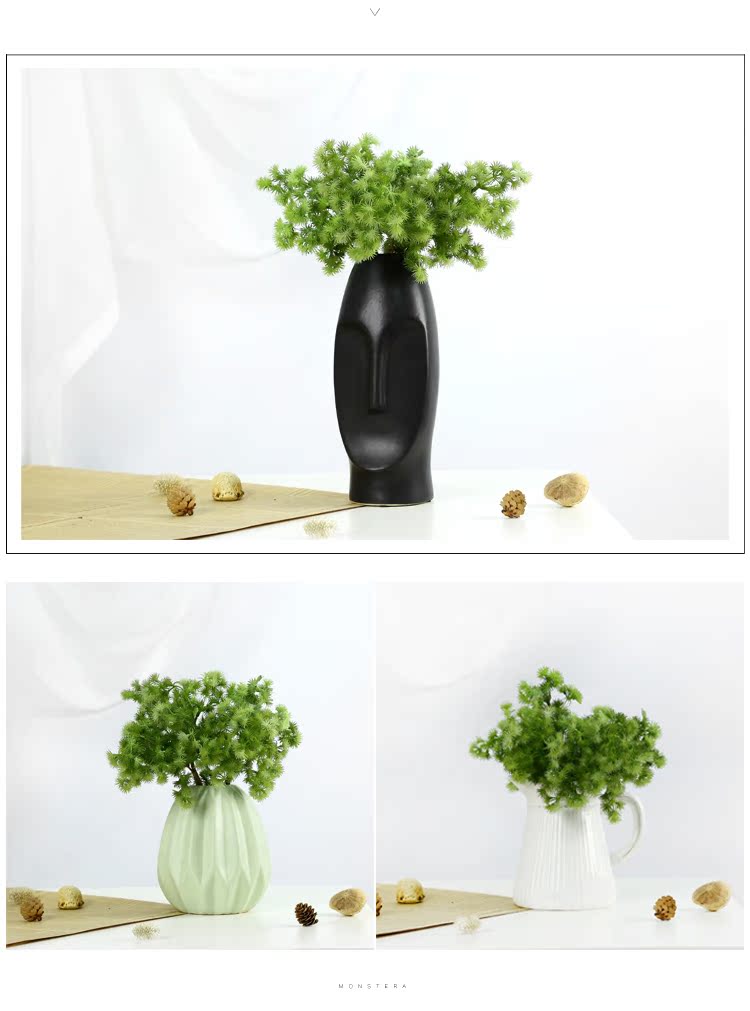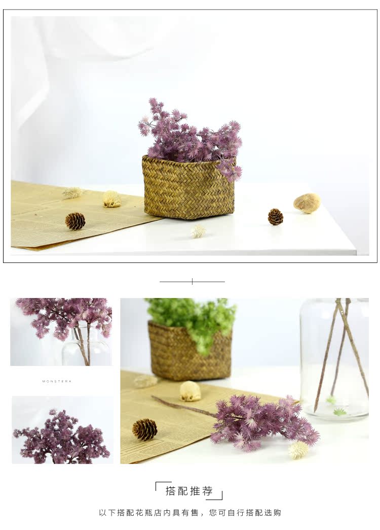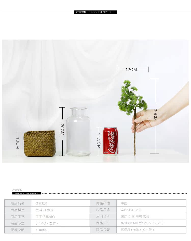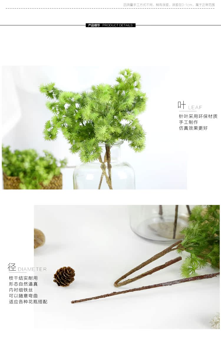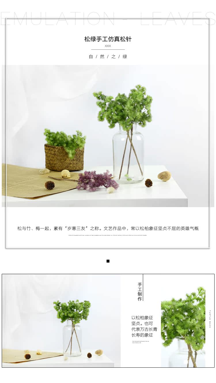 綠色2枝+海草花籃仿真植物松針 植物墻配材 綠色塑料假植物 客廳家居擺設裝飾