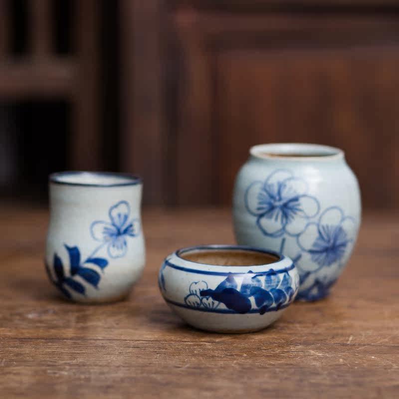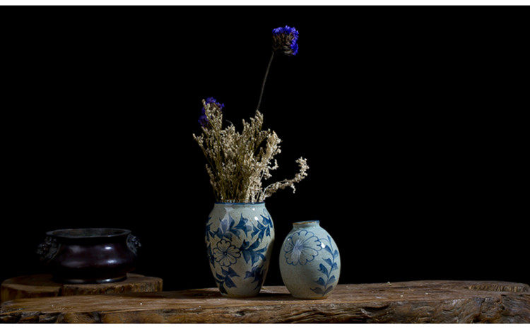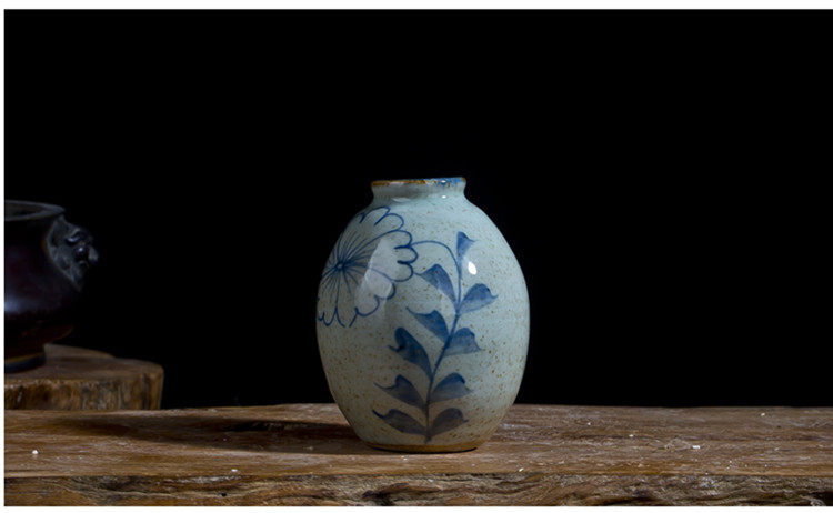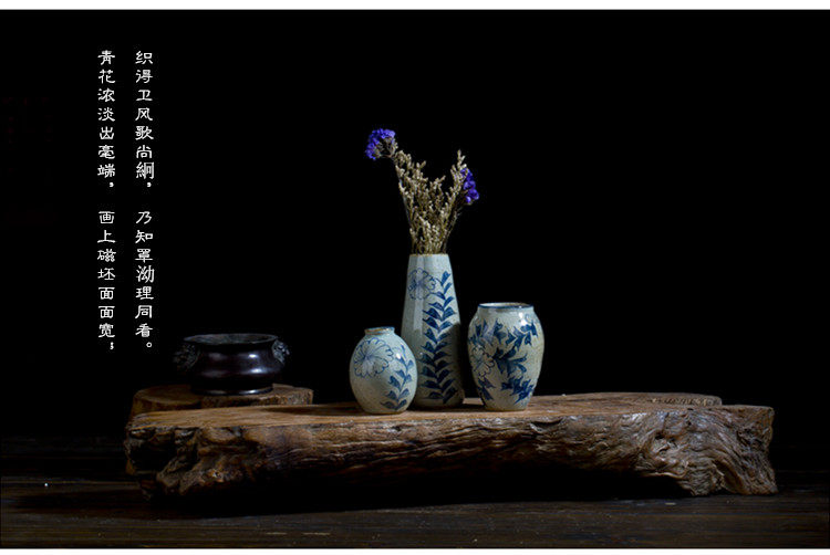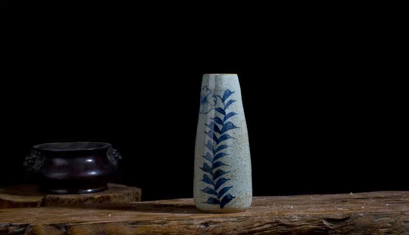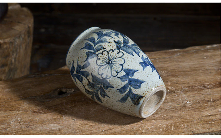 款六(底部無孔)手繪青花陶瓷花瓶景德鎮手工瓷器復古小花器花插花盆家居擺件