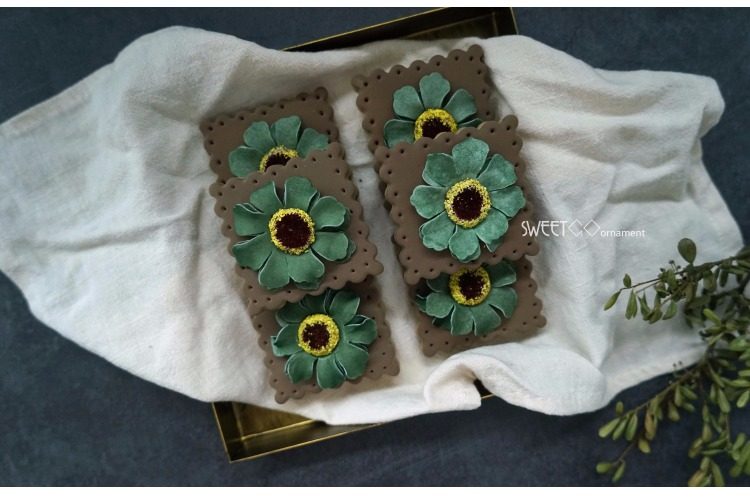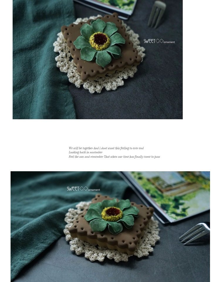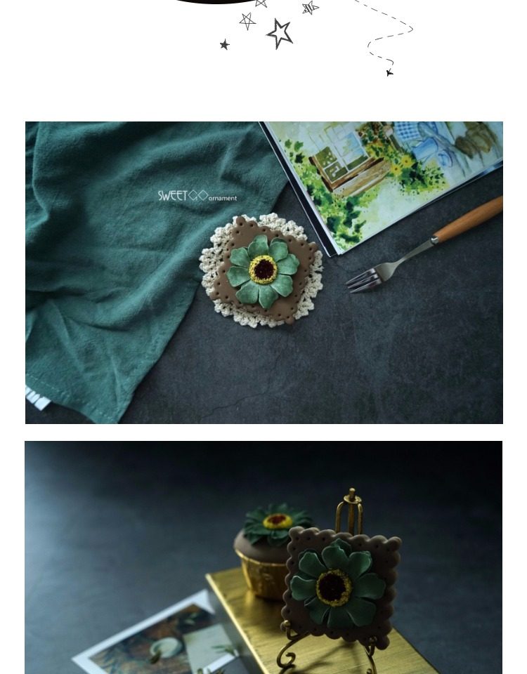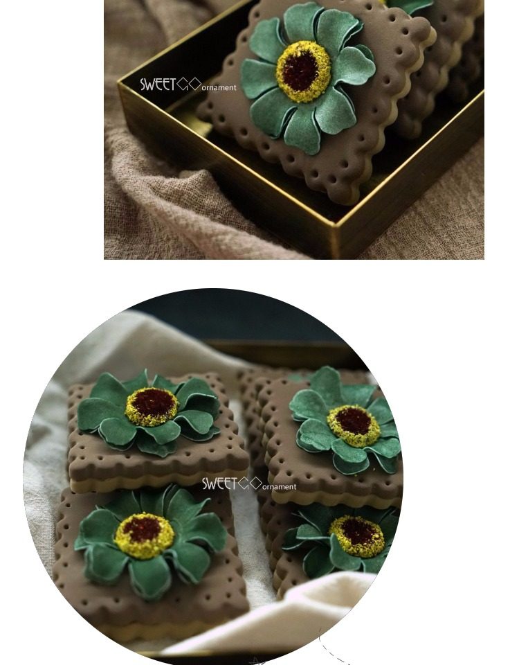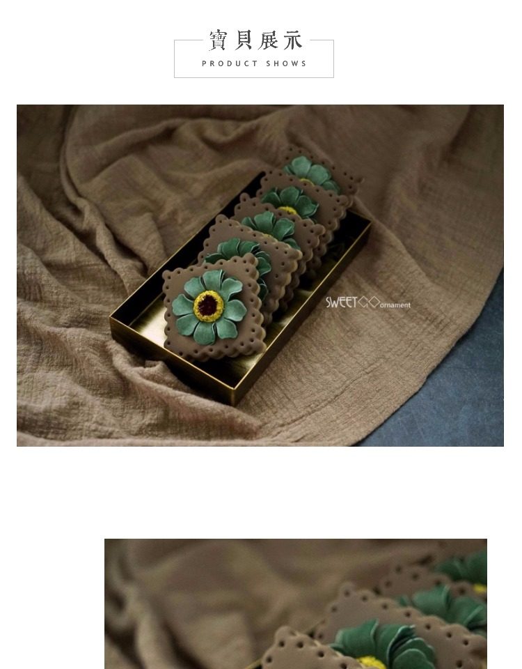 森綠色1個仿真巧克力餅干 花朵餅干 仿真翻糖餅干攝影道具 假蛋糕 櫥窗擺件