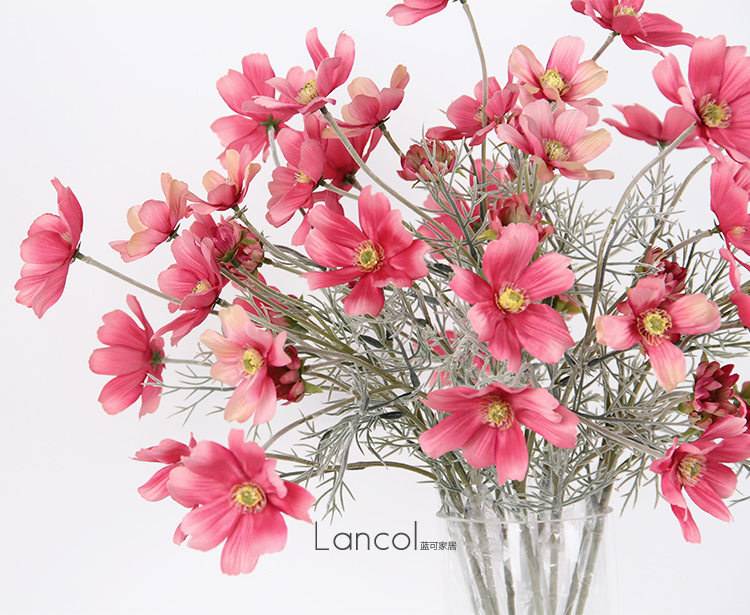 | 本公司大部分商品6一10天到貨。不接急單。急單的客戶請不要下單。感謝諒解與合作! 枝干是植絨材質的 難免有磕絨現象 廠家出貨就有 不是品質問題 介意的親慎拍 【名稱】:6頭波斯菊 深粉色 白色 淺粉色 淺紫色 深紫色 玫紅色 黃色 【尺寸】:總長60cm *花頭直徑7cm 手工測量,誤差不可避免 【材質】:花朵-絹布 枝干-塑膠內嵌鐵絲 【重量】:0.03KG/支 【包裝】:氣泡膜紙盒 【色差】:產品都是實物拍攝,不同光線下不同顯示器產品顏色略有不同是不可避免的 請接受后再下單,色差不是品質問題,謝謝理解. 【提示】:仿真花有別于鮮花,切勿過渡想象,仿真花是手工制品,偶有膠絲殘留裁剪毛邊或花瓣葉片脫落屬正常現象,脫落部分可安裝回去,前我們都會仔細檢查,請放心選購.
