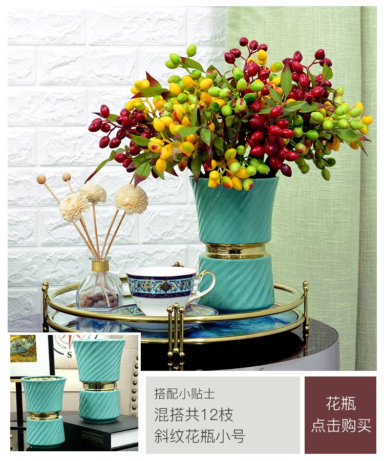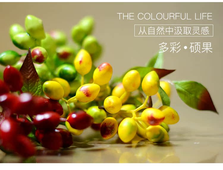 單支紅色果子假花仿真花客廳干花花束 室內漿果裝飾花歐式家居整體插花藝擺件