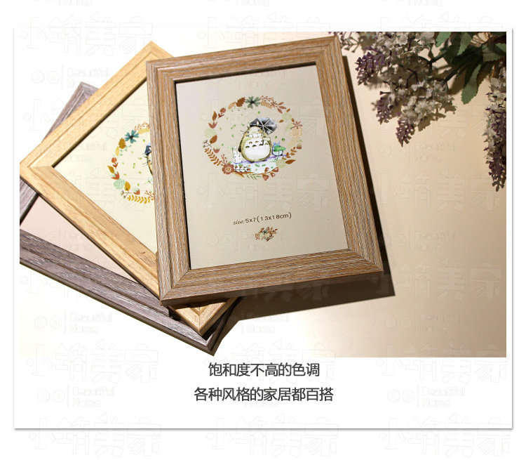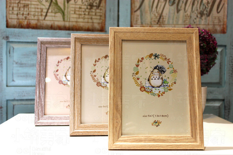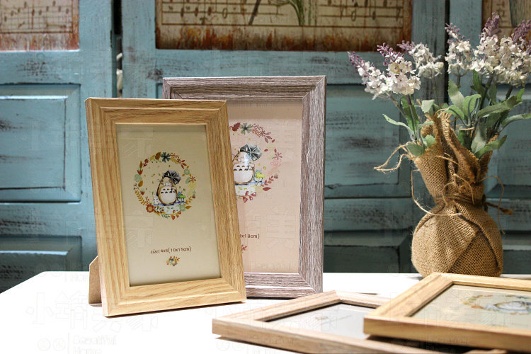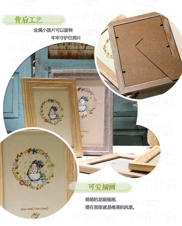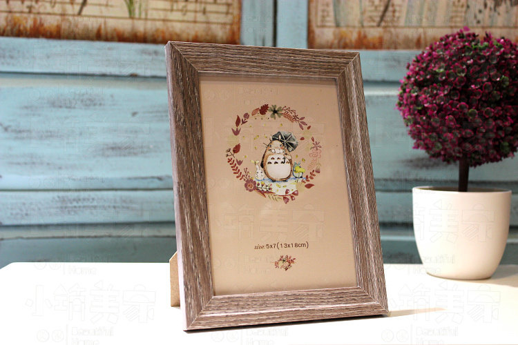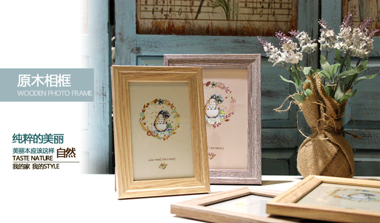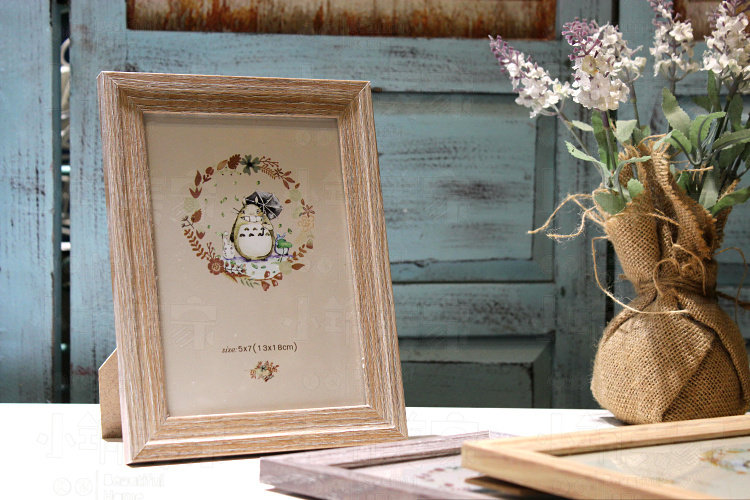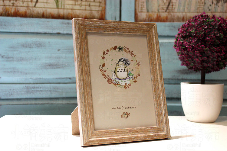 淺木色6寸創意龍貓花園復古簡約相框擺臺八寸 6六7七8寸照片架木質畫框相架